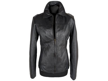 KOŽENÁ dámská černá bunda na zip M Prsa: 48,5 cm (97 cm obvod) Pas: 43 cm (86 cm obvod) Délka: 63 cm Rukáv: 63,5 cm od ramene