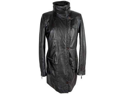 KOŽENÝ dámský černý kabát Woodpecker 20/46 Velikost 20/46 Prsa: 58 cm (116 cm obvod) Pas: 54 cm (108 cm obvod) Délka: 86 cm Rukáv: 60,5 cm/ 76...