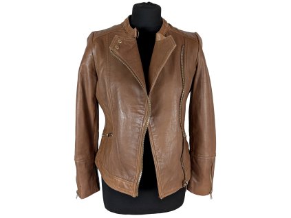 KOŽENÝ dámský hnědý křivák MANGO XS Měkká jehněčí kůže Prsa: 45 cm (90 cm obvod) Pas: 40,5 cm (81 cm obvod) Délka: 54 cm Rukáv: 59 cm od...