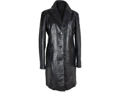 KOŽENÝ dámský dlouhý černý kabát Roy/Rene, měkká kůže Rukávy lze ohrnovat Velikost 38 - M Prsa: 50 cm (100 cm obvod) Pas: 46...