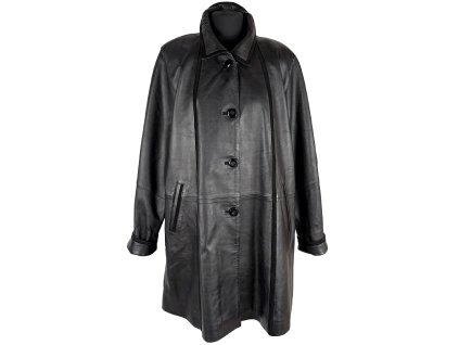 KOŽENÝ dámský černý kabát 46/20 Prsa: 59 cm (118 cm obvod) Pas: 54,5 cm (109 cm obvod) Délka: 98 cm Rukáv: 62 cm/ 77 cm od krku