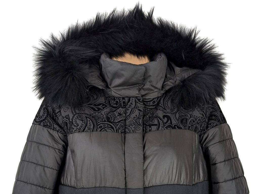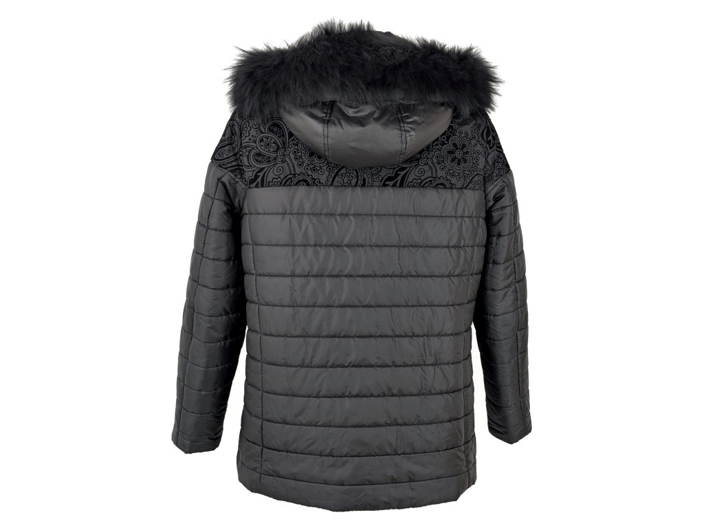 Dámská černá prošívaná bunda s kapucí s pravou kožešinou Concept K 42