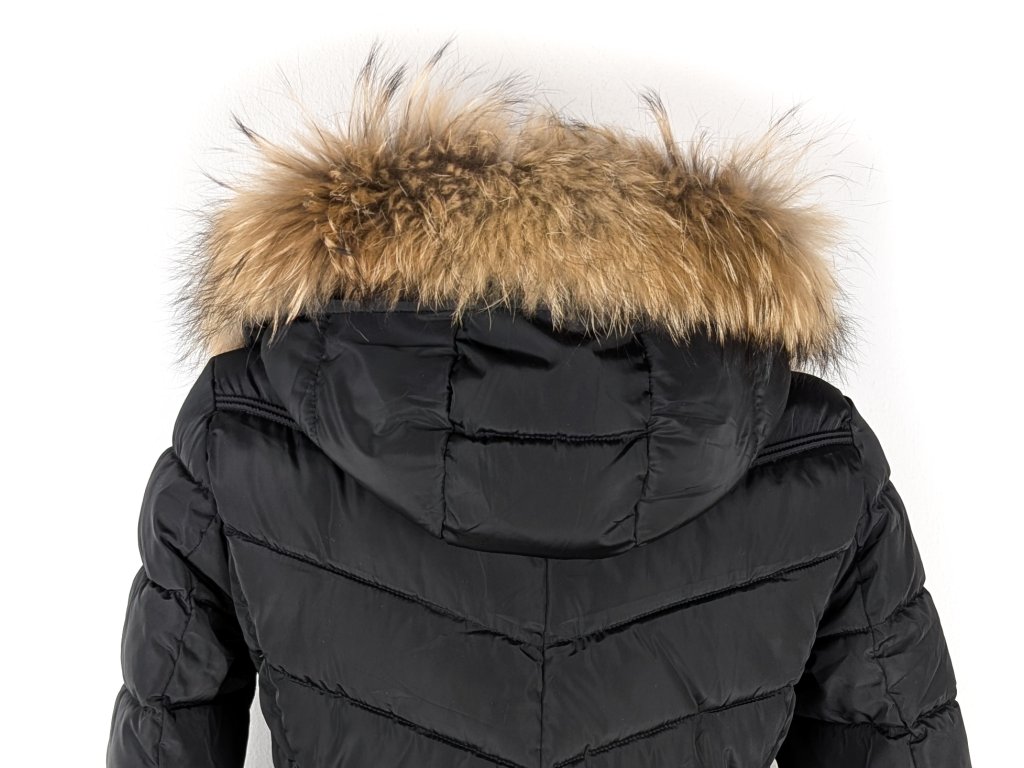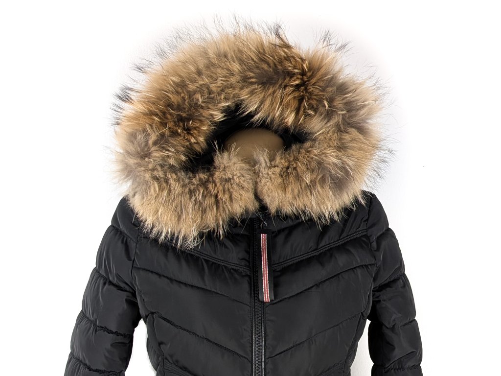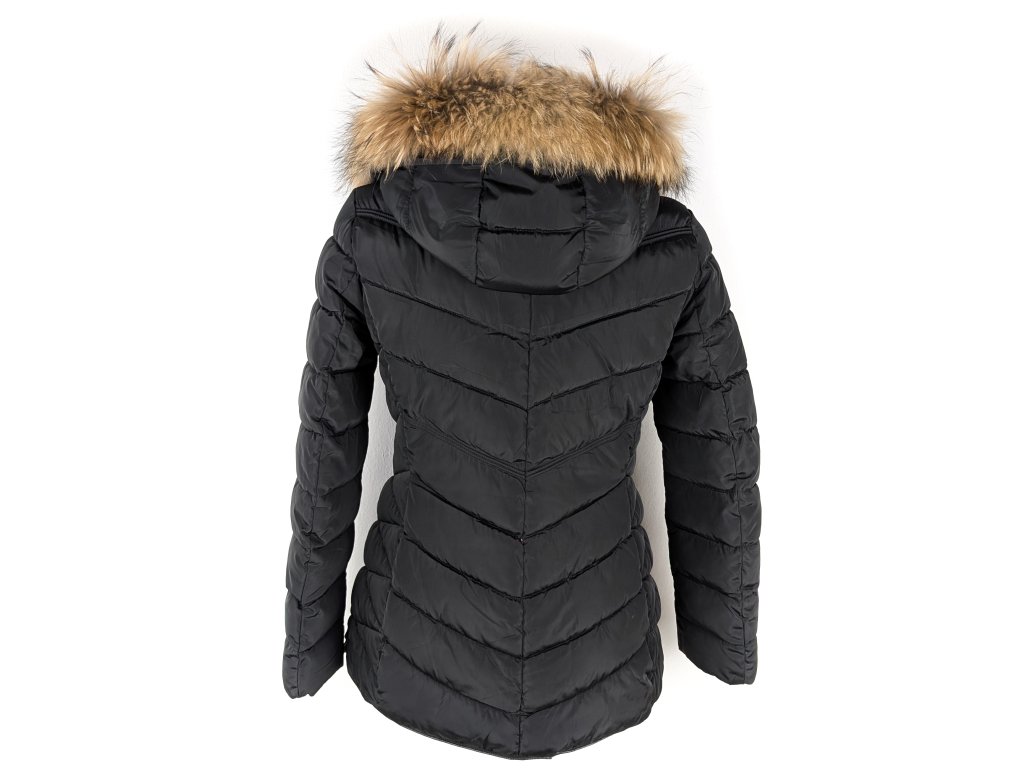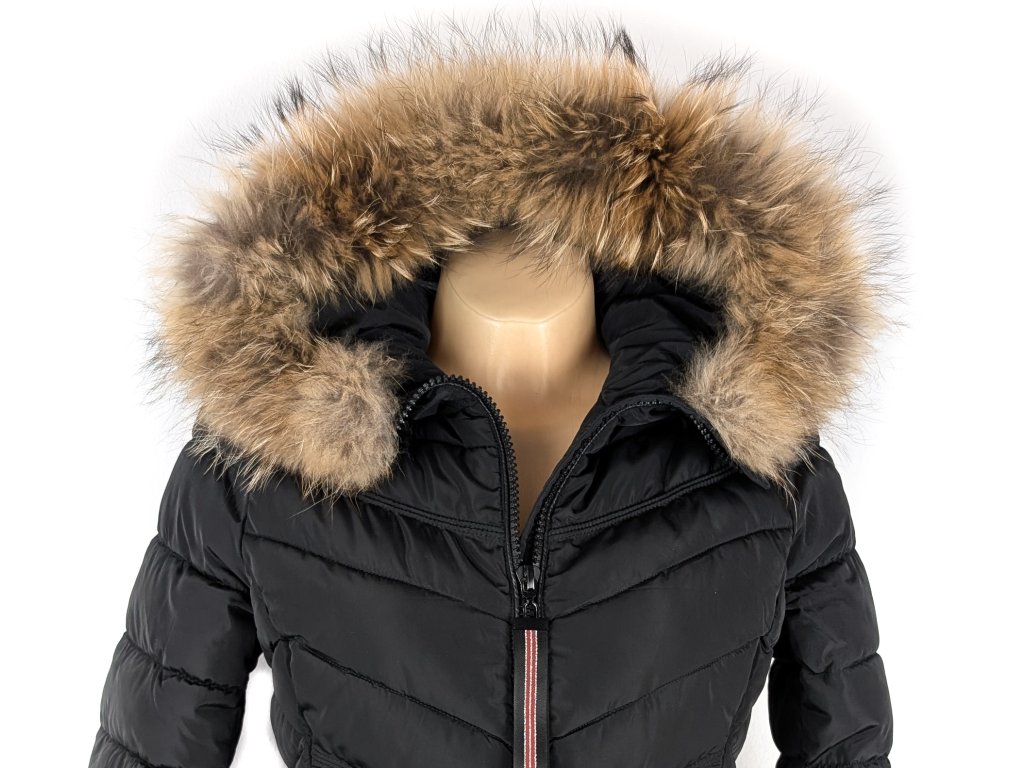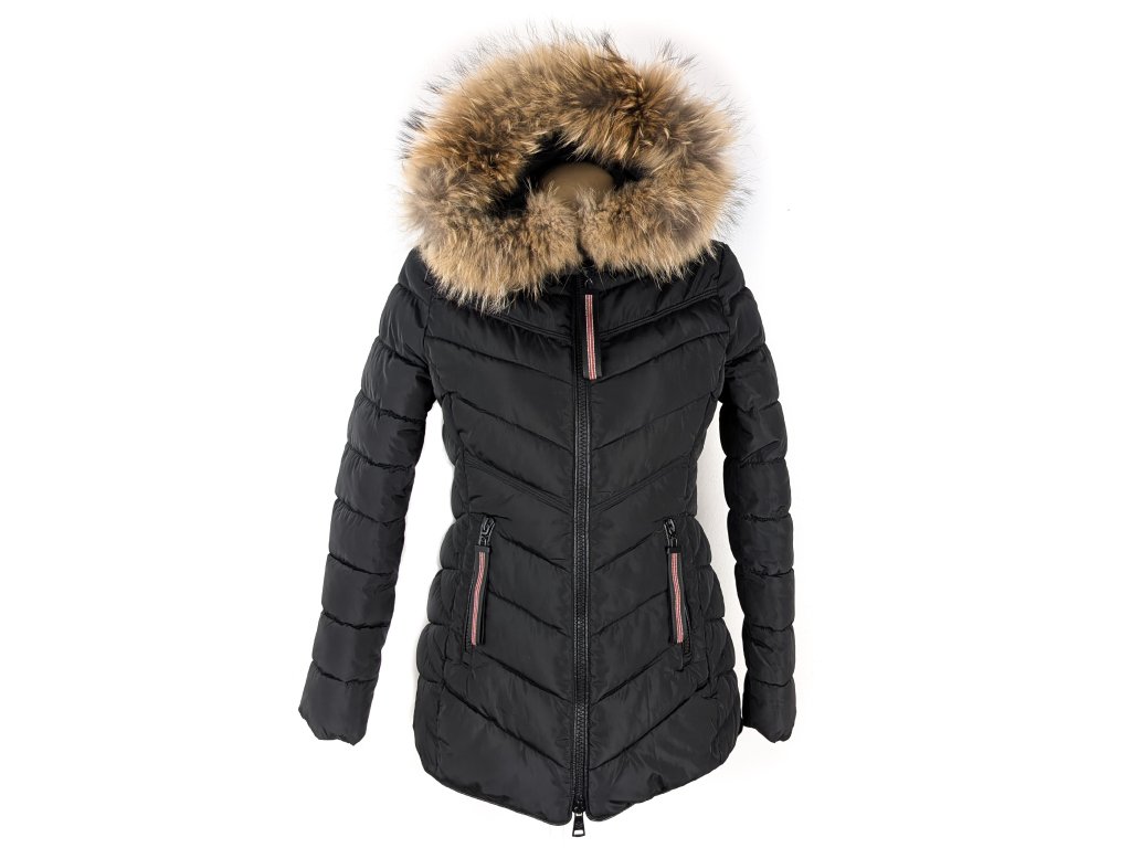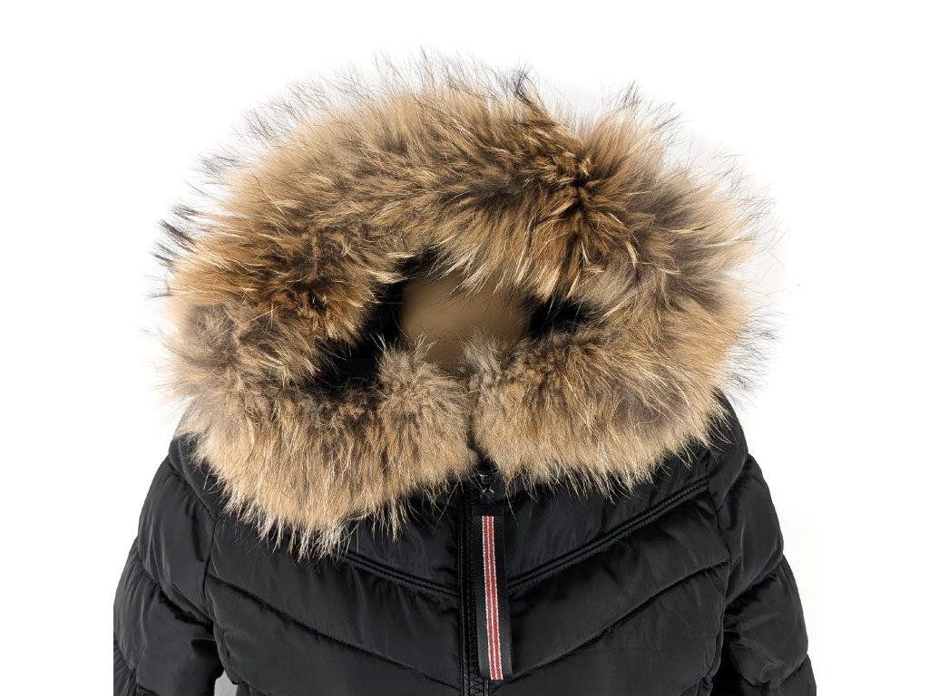 Dámská černá prošívaná bunda s kapucí s pravou kožešinou Moda Piu Anna M
