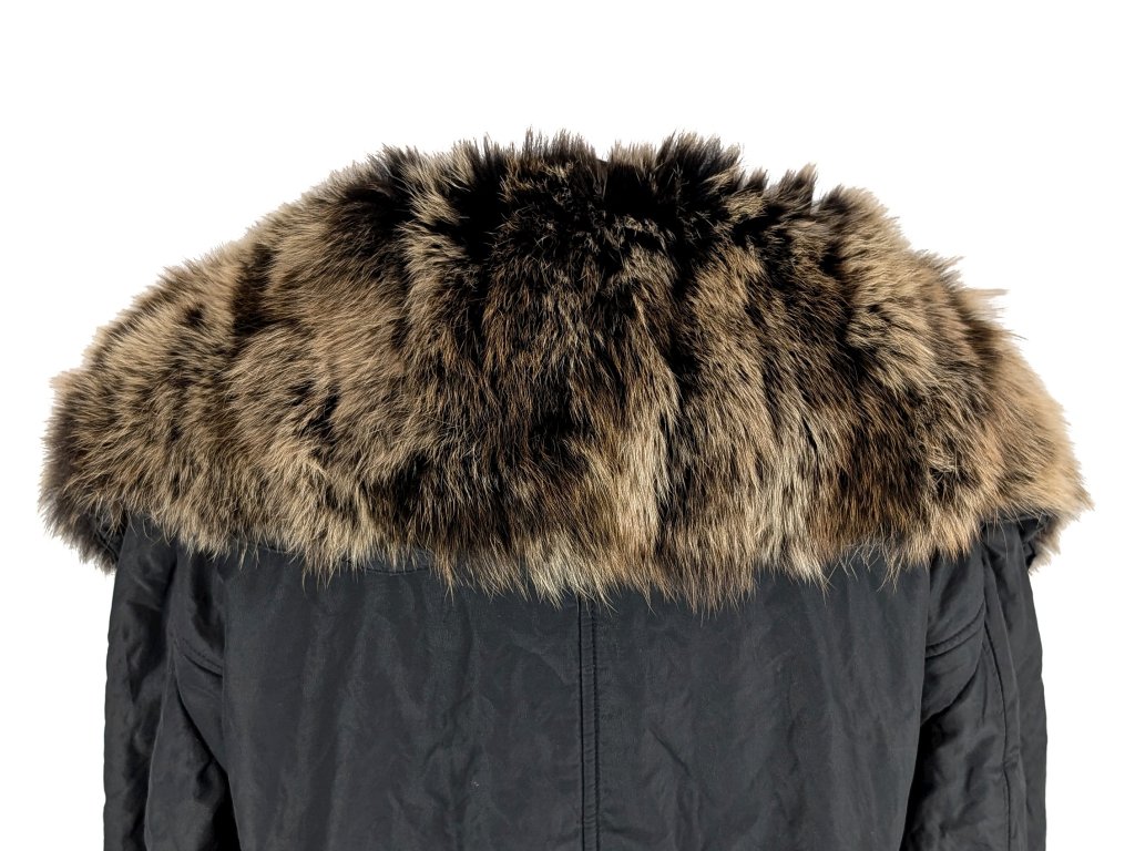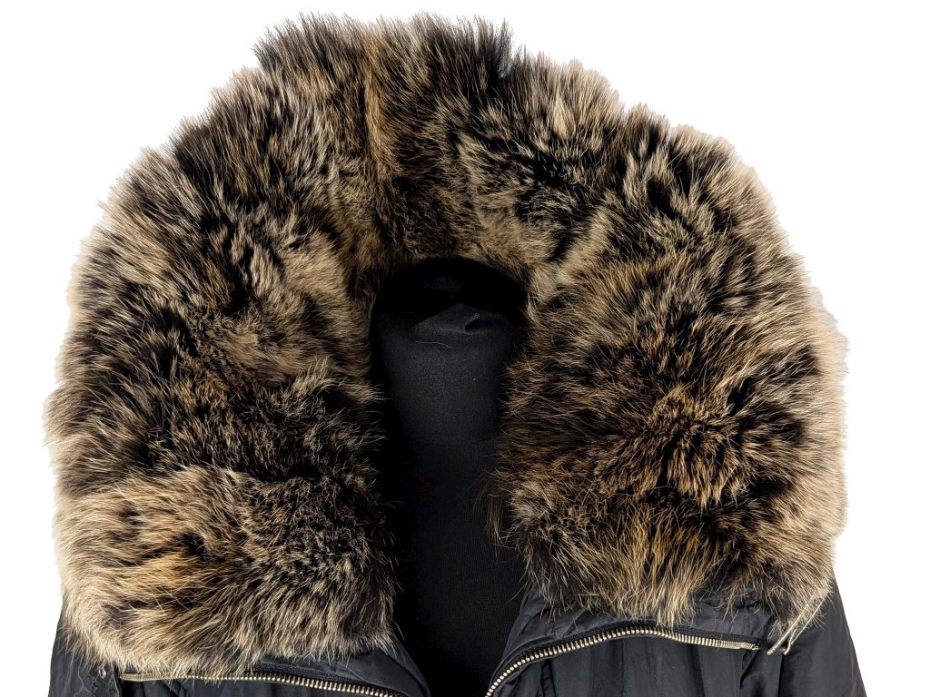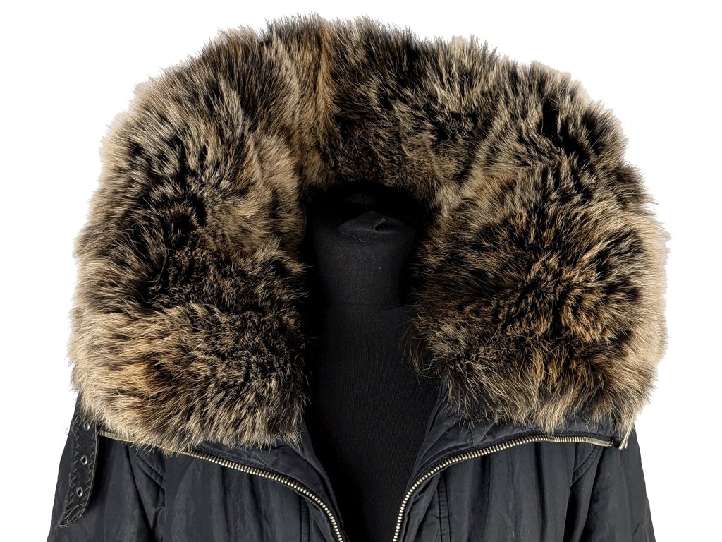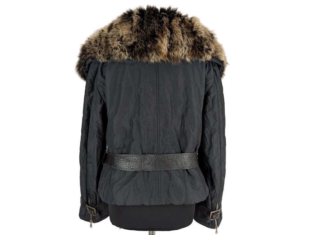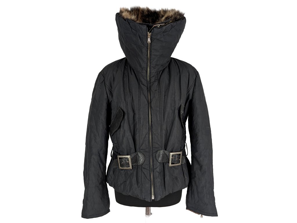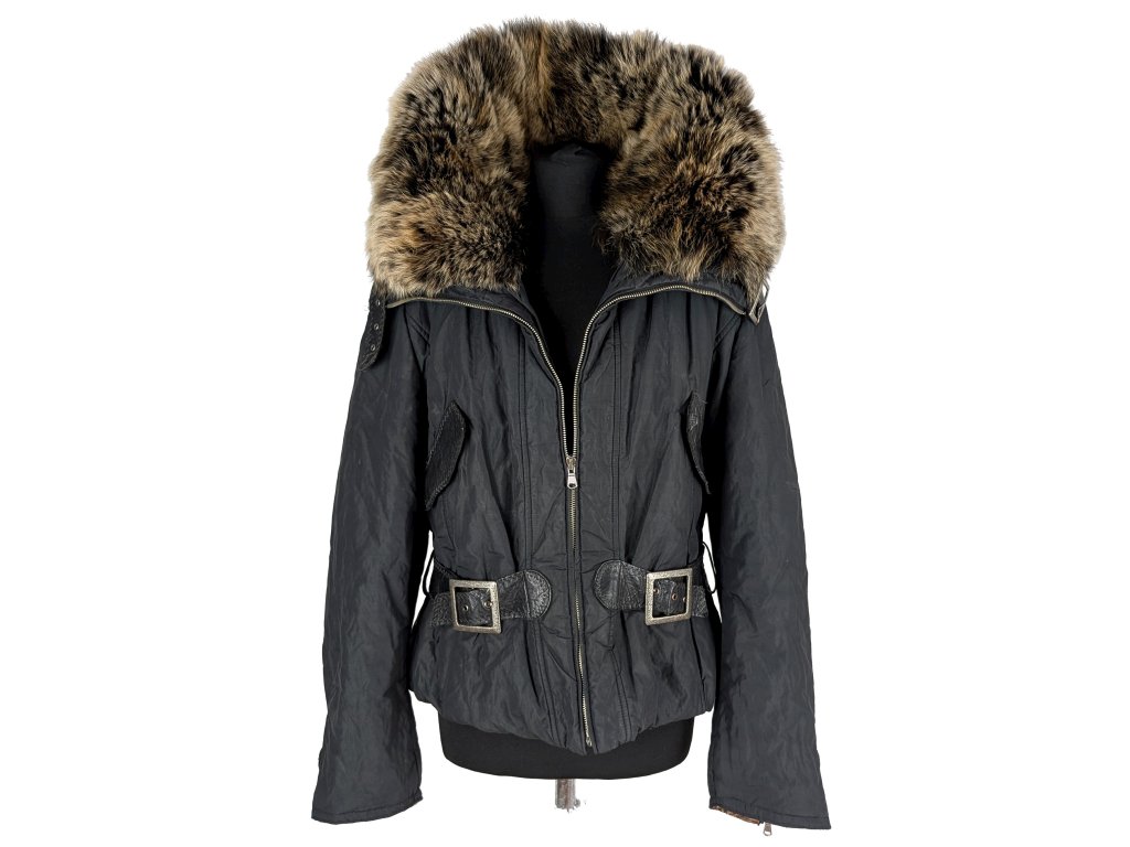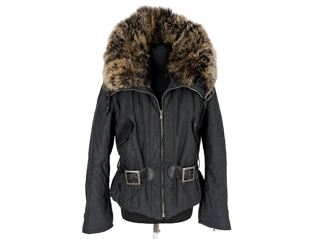 Dámská černá prošívaná bunda s pravou kožešinou XL