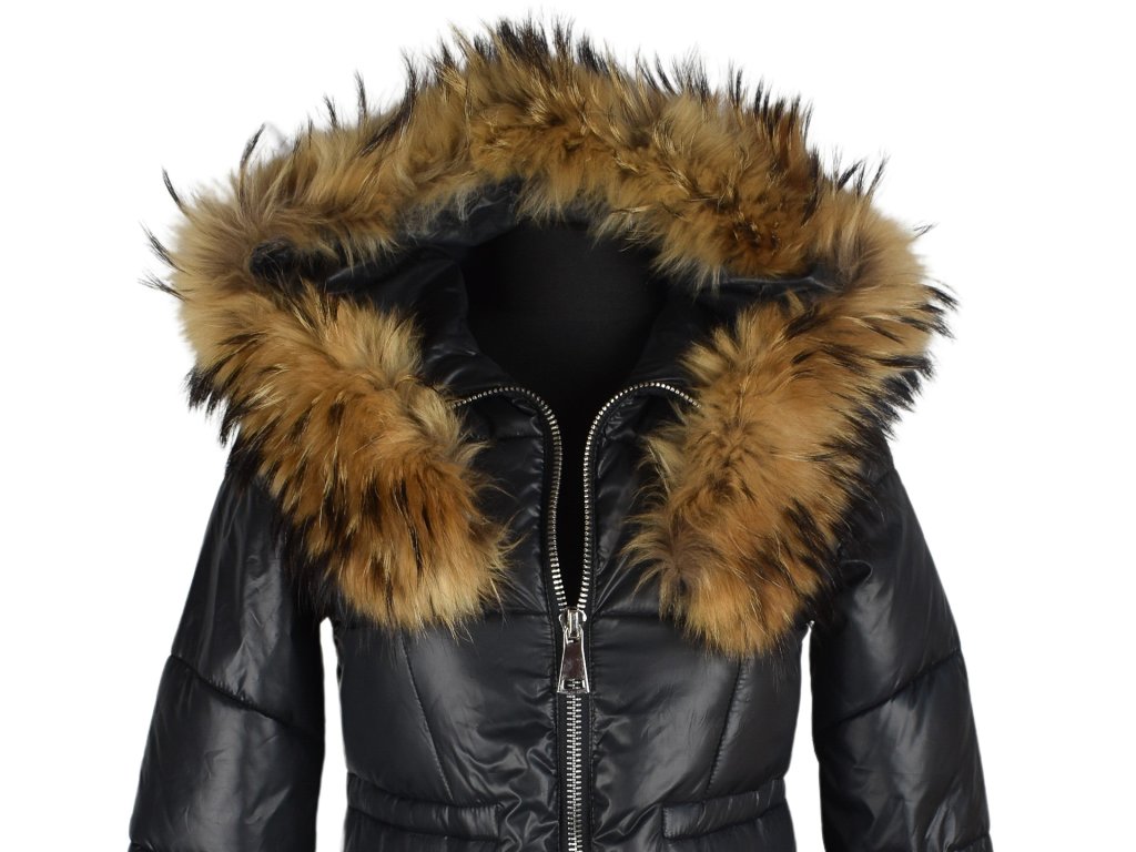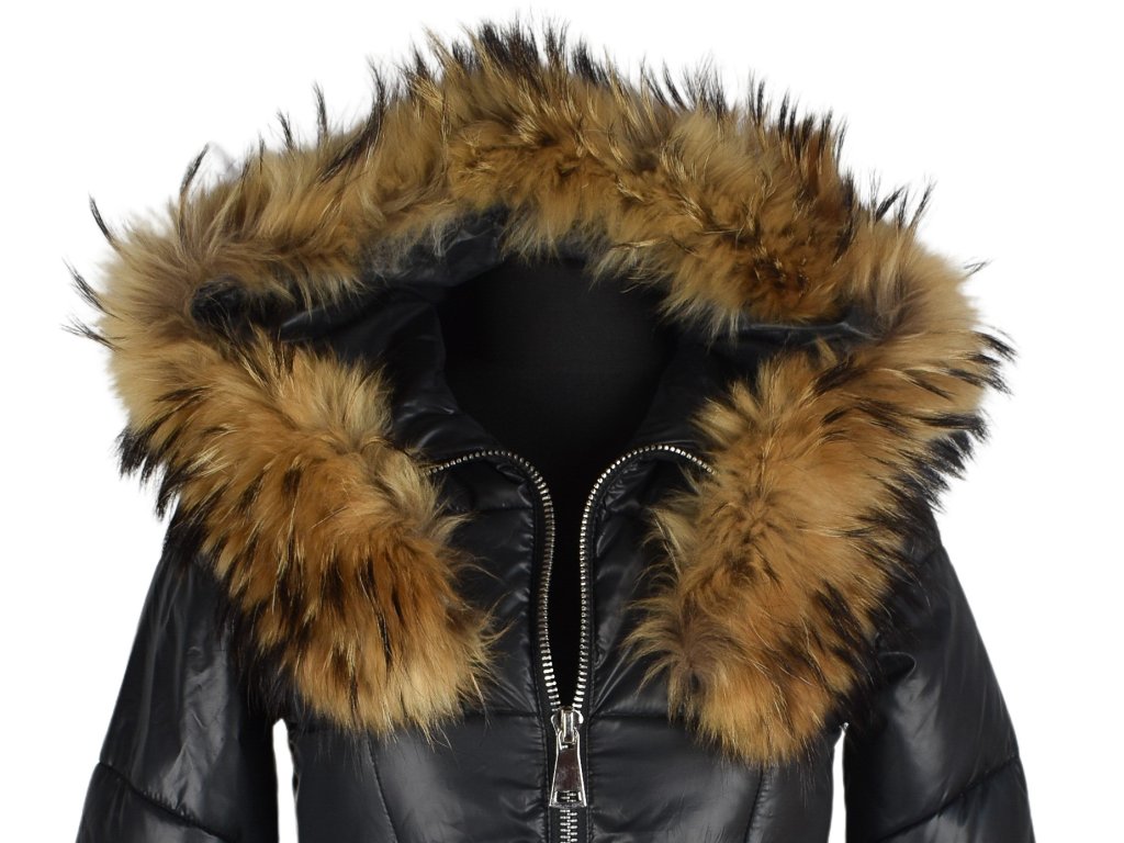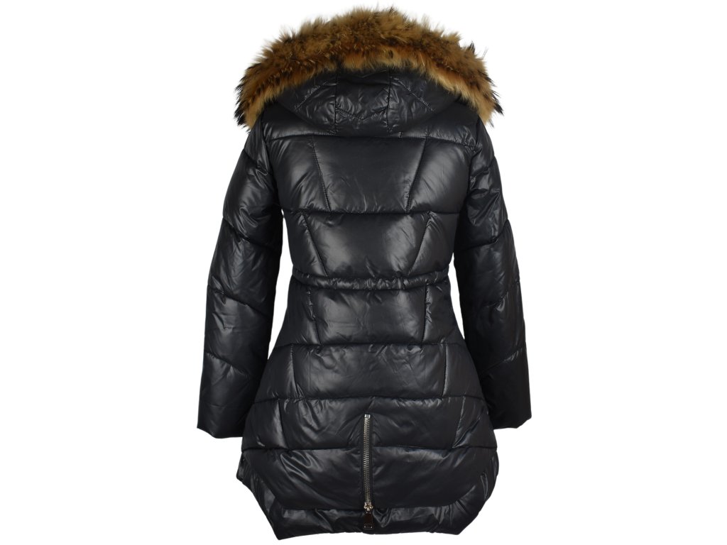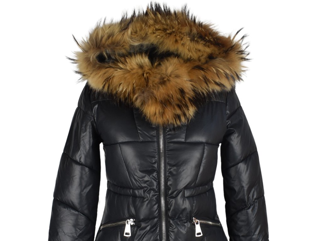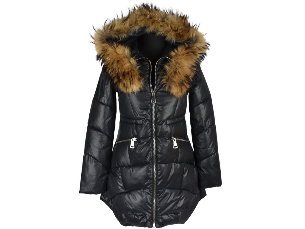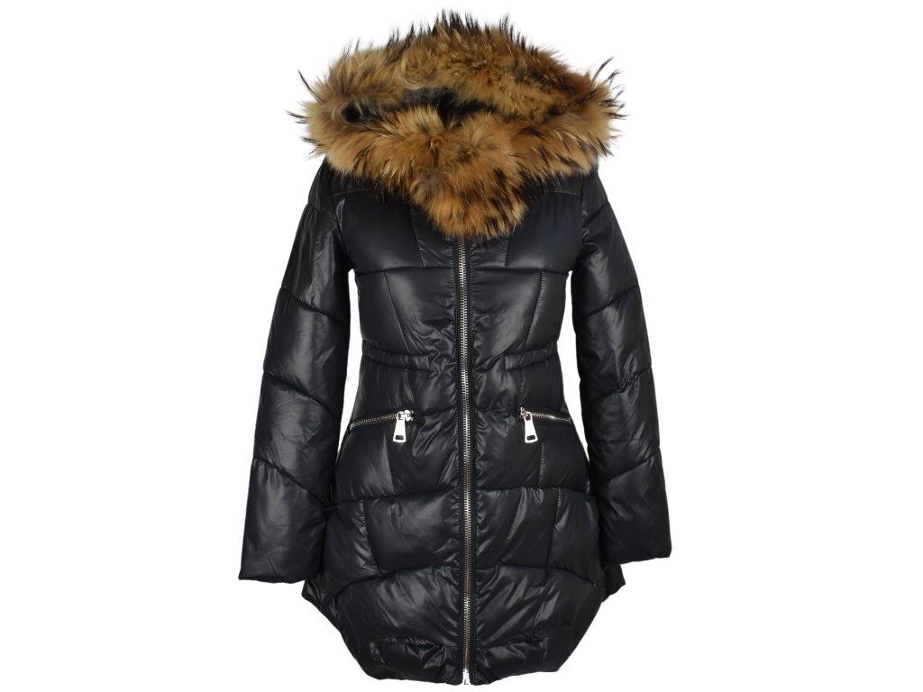 Dámská černá prošívaná parka s pravou kožešinou XS