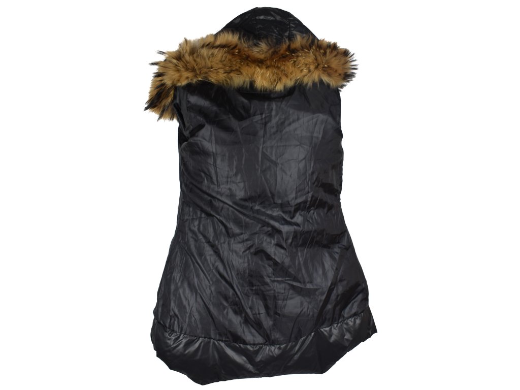 Dámská černá prošívaná parka s našitou pravou kožešinou, velikost XS, stahování v pase