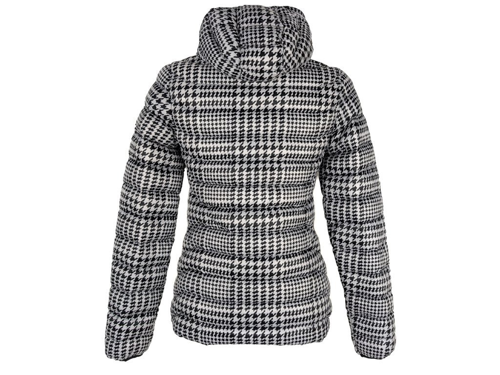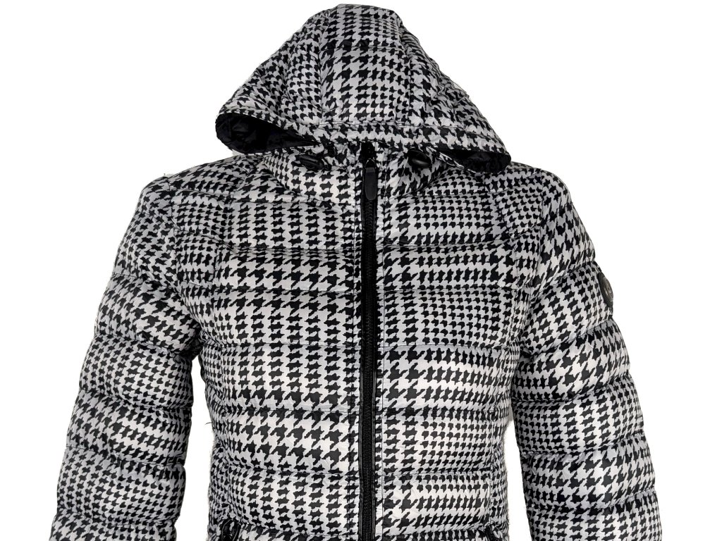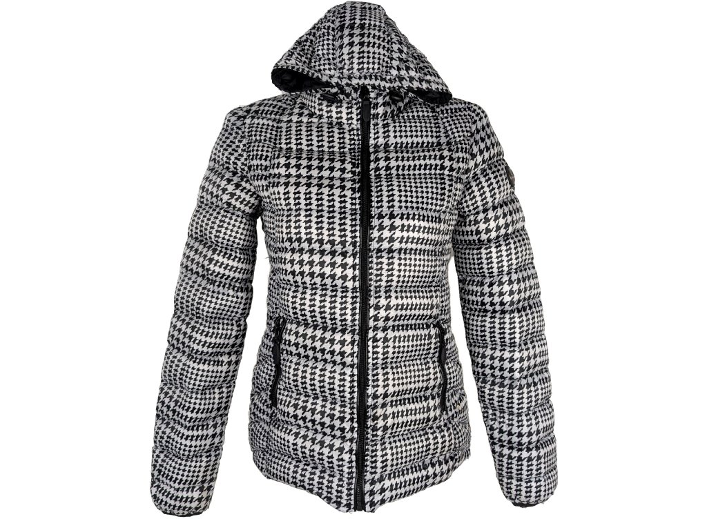 Dámská černobílá prošívaná bunda s kapucí - kohoutí stopa AMISU 36