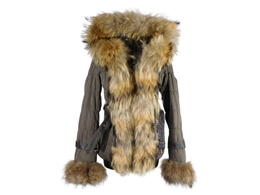 Dámská hnědá prošívaná bunda s pravou kožešinou GIORGIO &MARIO (VERA PELLE) S*