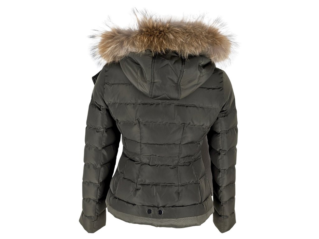 Dámská khaki prošívaná bunda s kapucí s pravou kožešinou Frime S