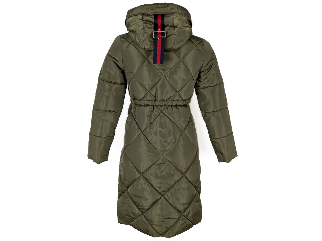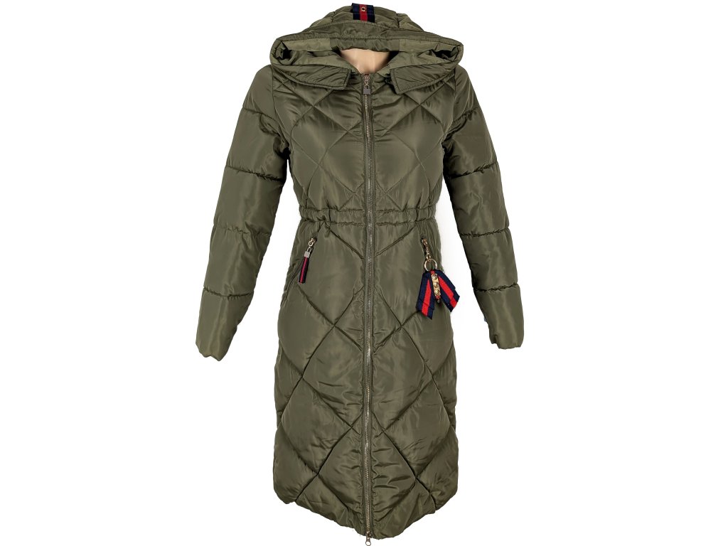 Dámská khaki zelená prošívaná parka s kapucí XS