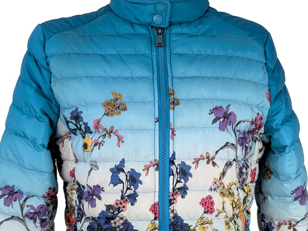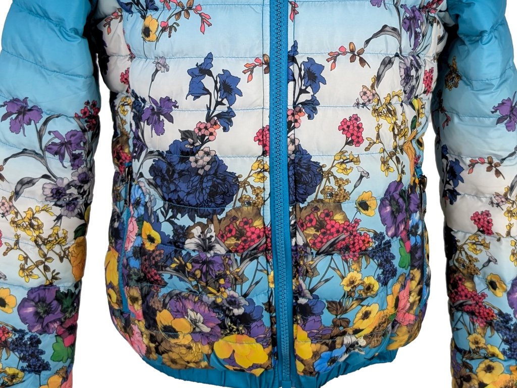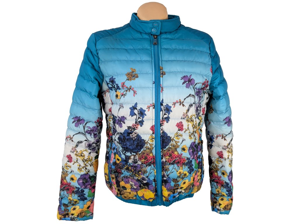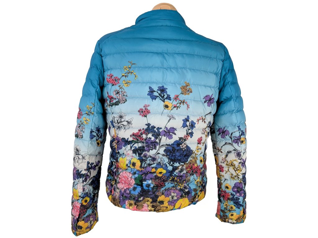 Dámská modrá prošívaná bunda s květinovým vzorem M
