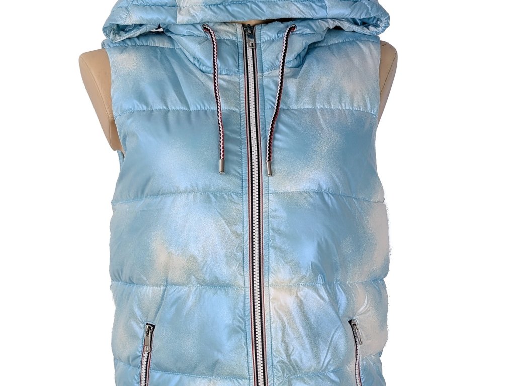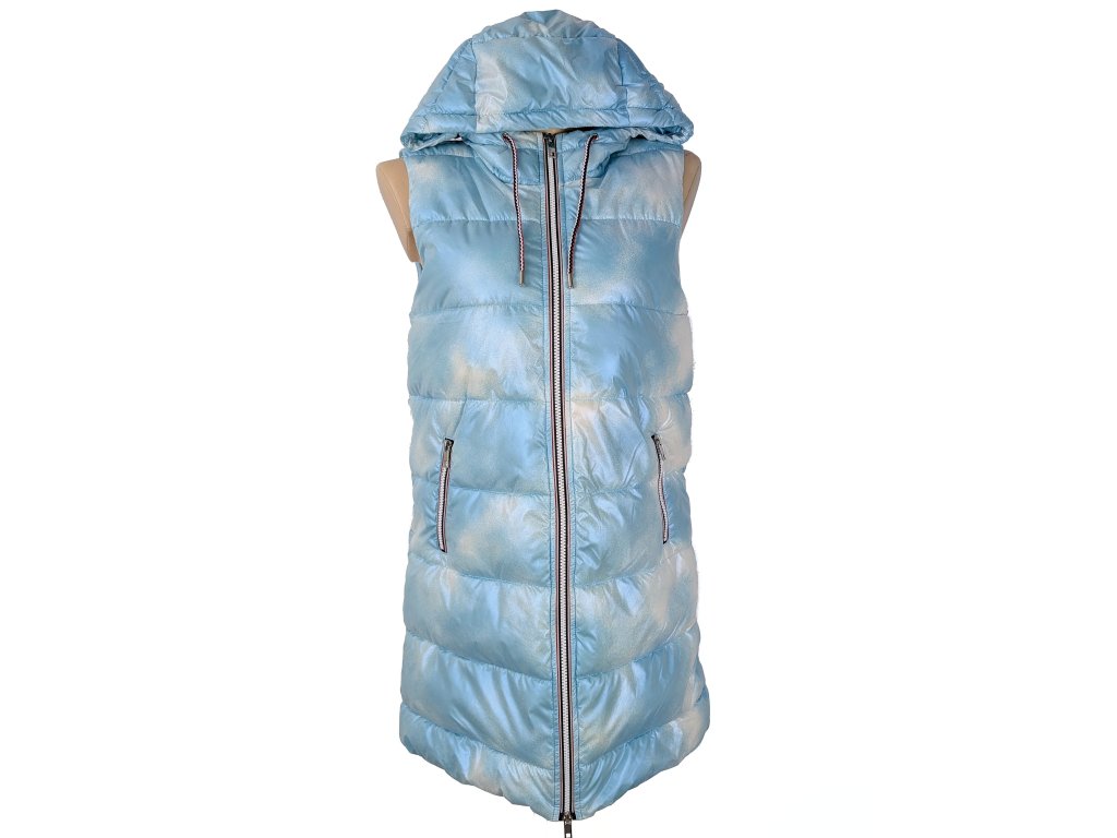 Dámská modrá prošívaná perleťová vesta s kapucí Escandelle Paris S