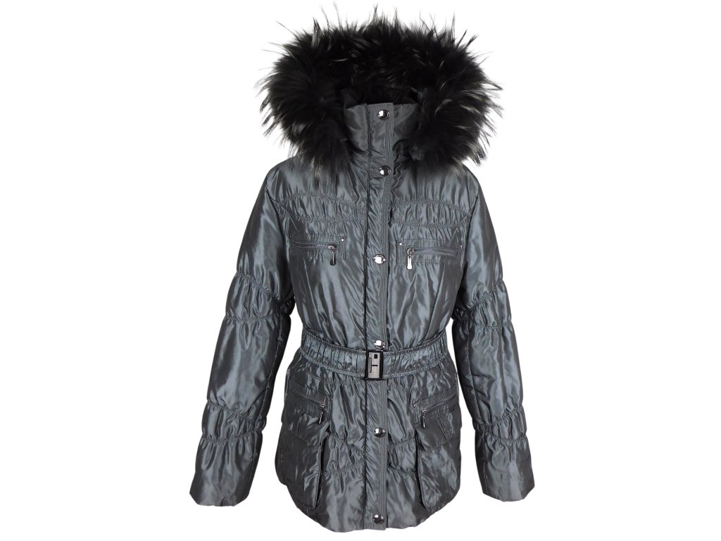 Dámská prošívaná šedá bunda s pravou bohatou kožešinou ANORAC M*