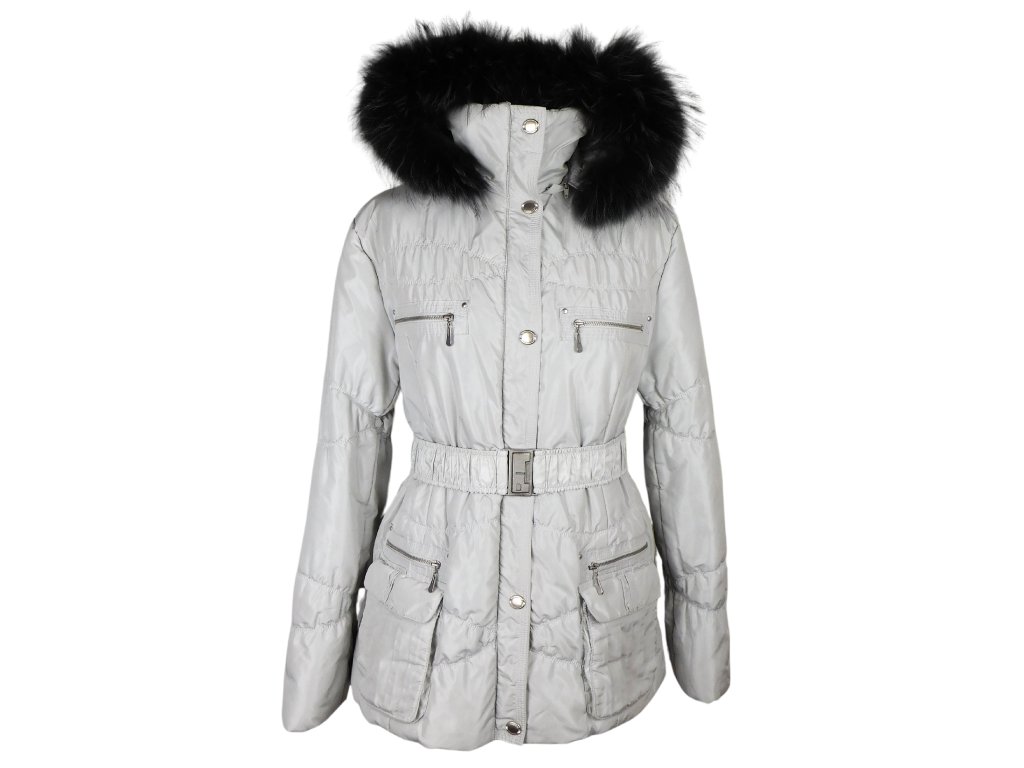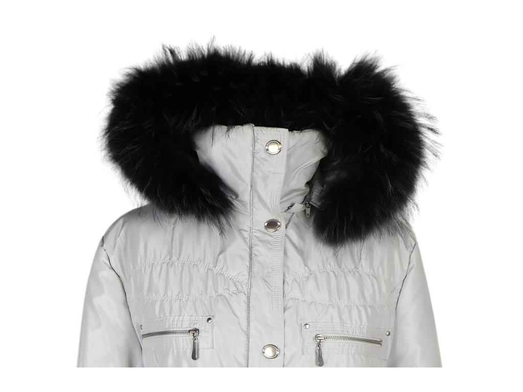 Dámská šedá prošívaná bunda s pravou kožešinou ANORAC L*