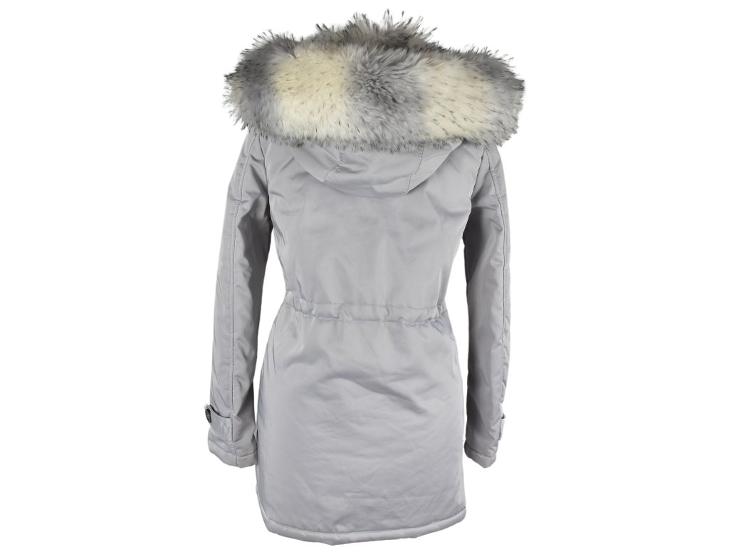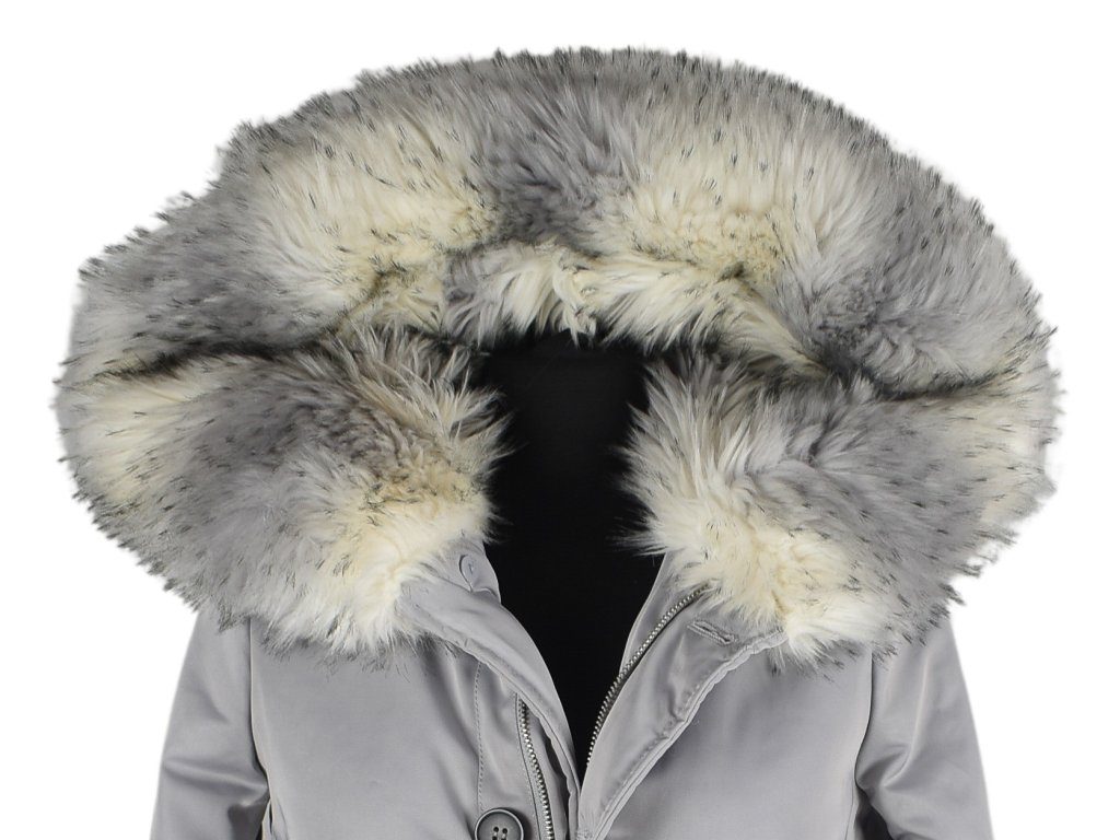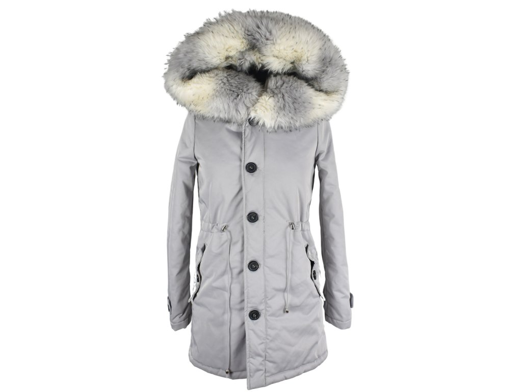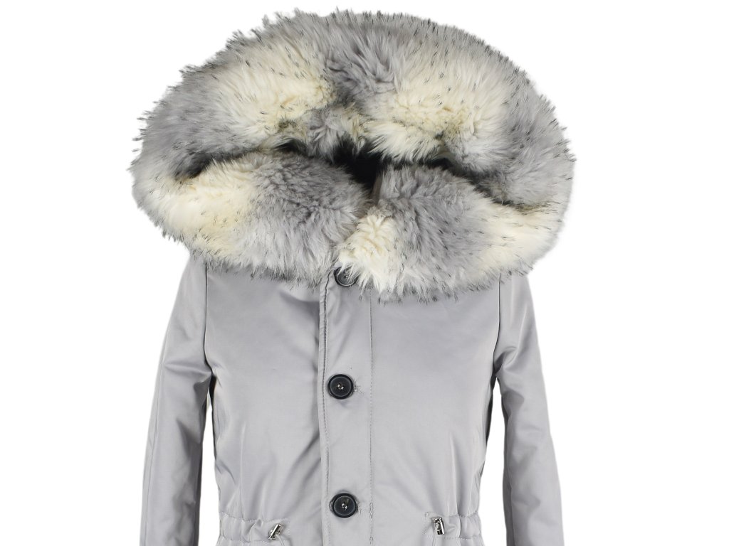 Dámská zimní šedá parka s objemnou kožešinovou kapucí K.Zell S