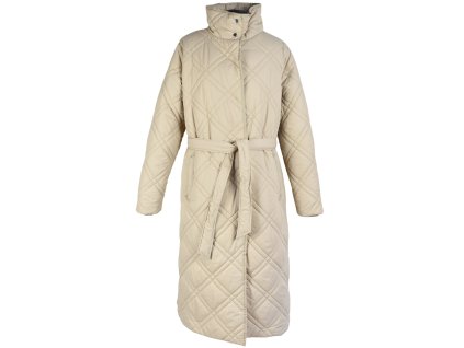 F&F, dámský dlouhý béžový prošívaný kabát s páskem, velikost 18/46, zapínání na cvoky Prsa: 63 cm (125 cm obvod) Délka: 116 cm Rukáv: 65 cm od ramene