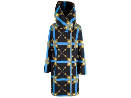 Dámský barevný kabát s páskem a kapucí Rosa Rose Barevný kabátek pokrytý černou "síťkou" Uvedena velikost M - odpovídá S Odnimatelná kapuce s pravou kožešinou 100% polyester...