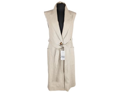 Lněná dámská béžová dlouhá vesta s páskem ZARA M S cedulkou - původní cena 79,90 USD Složení neuvedeno Prsa: 49 cm Délka: 103 cm