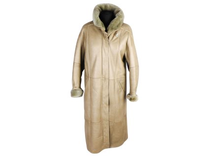 Kožený dámský dlouhý pískový kabát EXCLUSIV MODELL- LEDER-SEN Velikost L Zapínání na vnitřní knoflíky Uvnitř kabátu kožíšek Lehký Měkká ovčí kůže...