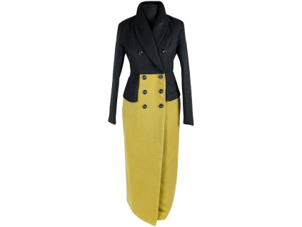 Extravagantní dámský dlouhý žlutočerný kabát Stylewe M - s cedulkou 90% polyester, 10% elastan Prsa: 47 cm (94 cm obvod) Pas: 40,5 cm (81 cm...