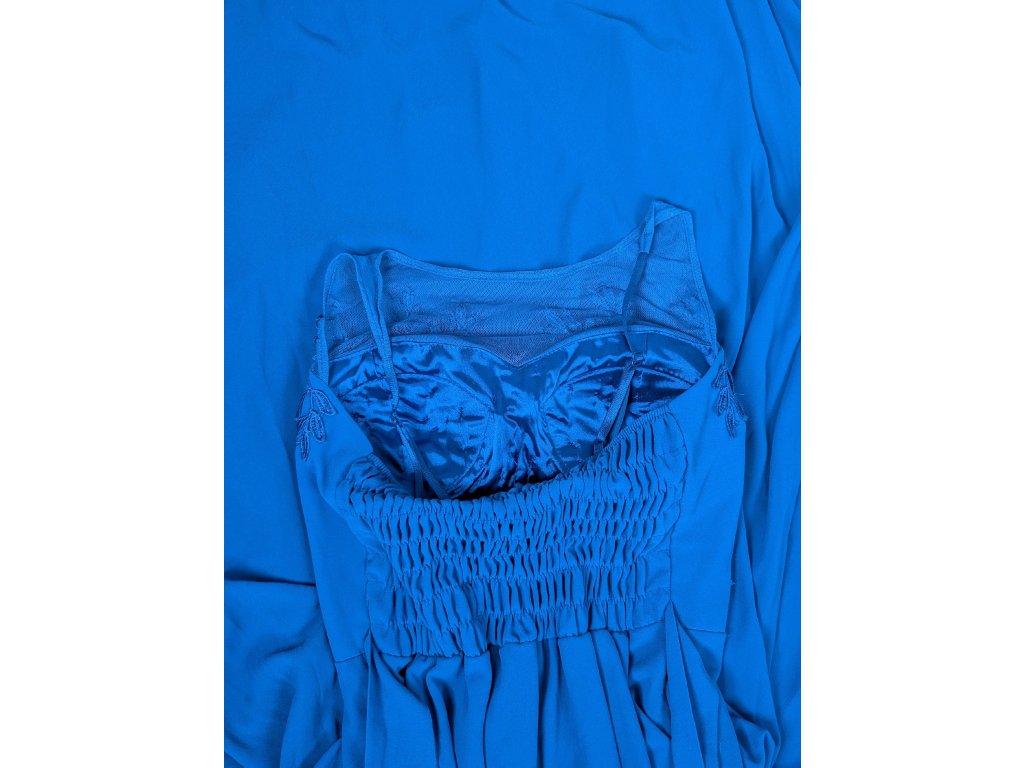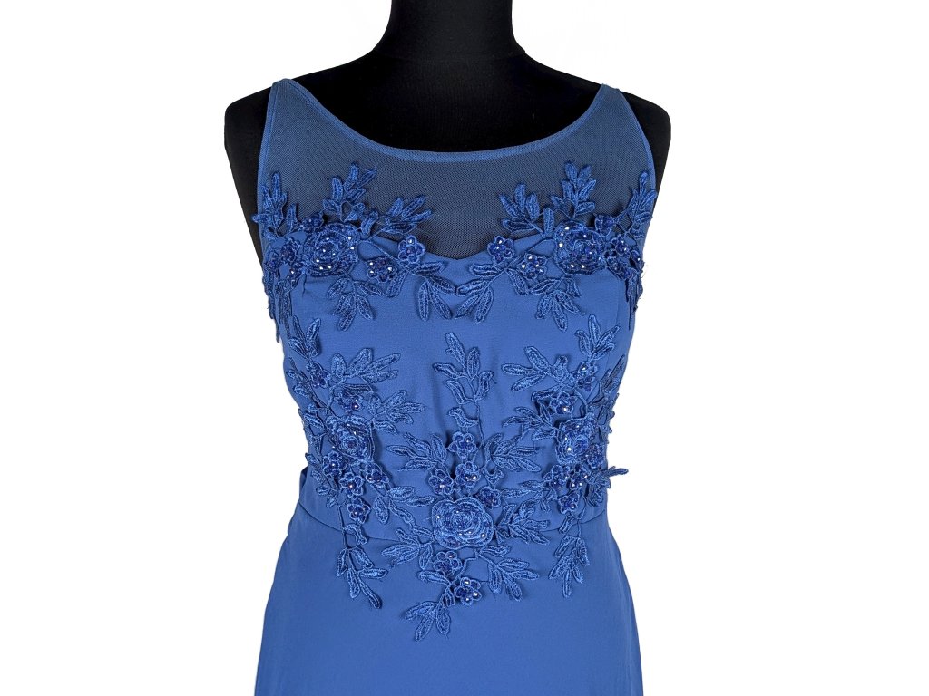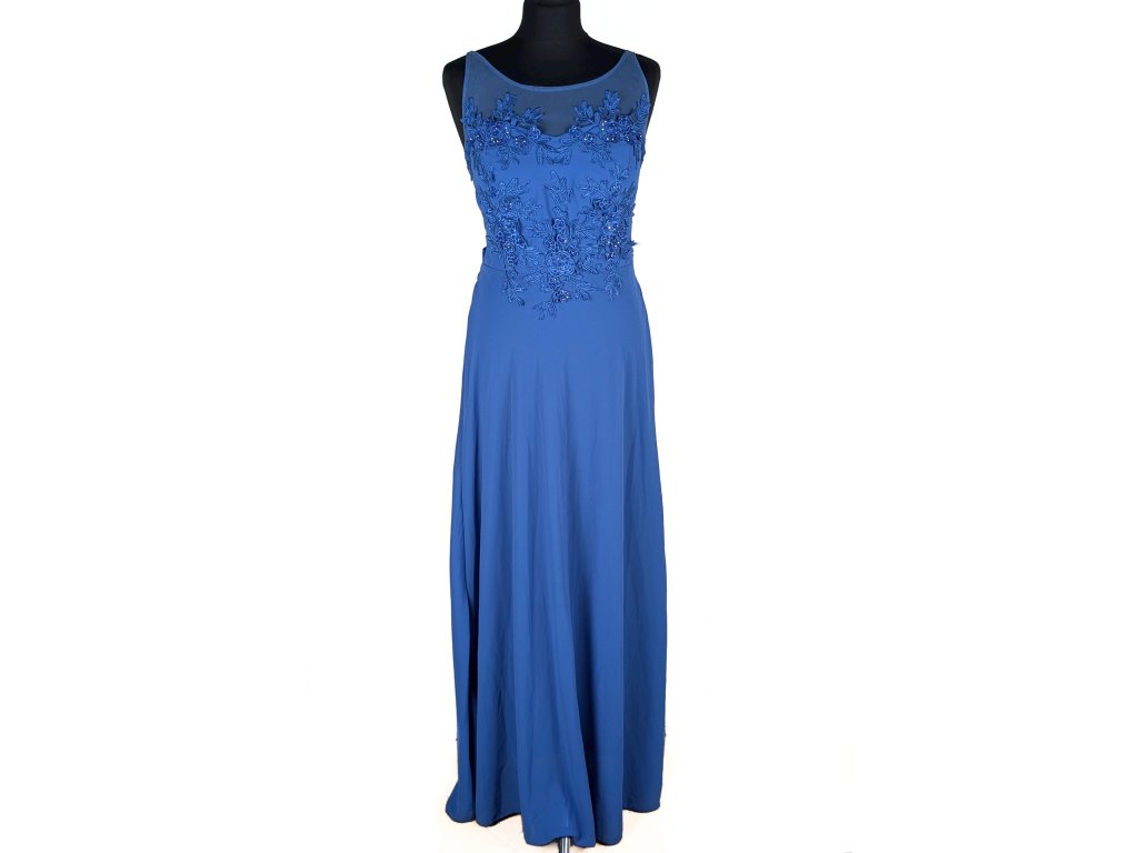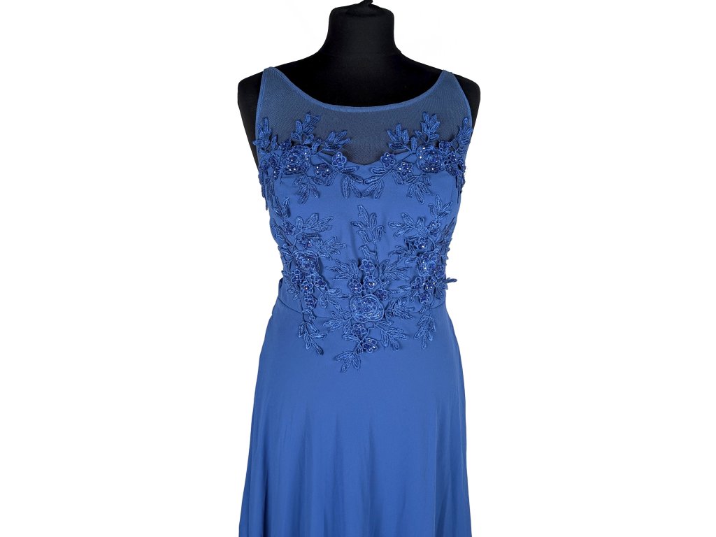 Dámské modré dlouhé společenské šaty s krajkou S/M