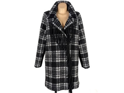Vlněný dámský černobílý kostkovaný kabát Oltre XL 64% polyester, 35% vlna, 1% akryl Prsa: 61 cm (122 cm obvod) Pas: 63 cm (126 cm obvod) Délka: 95 cm...