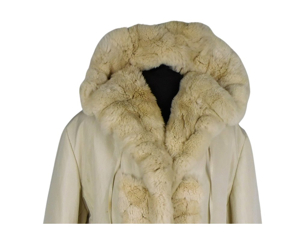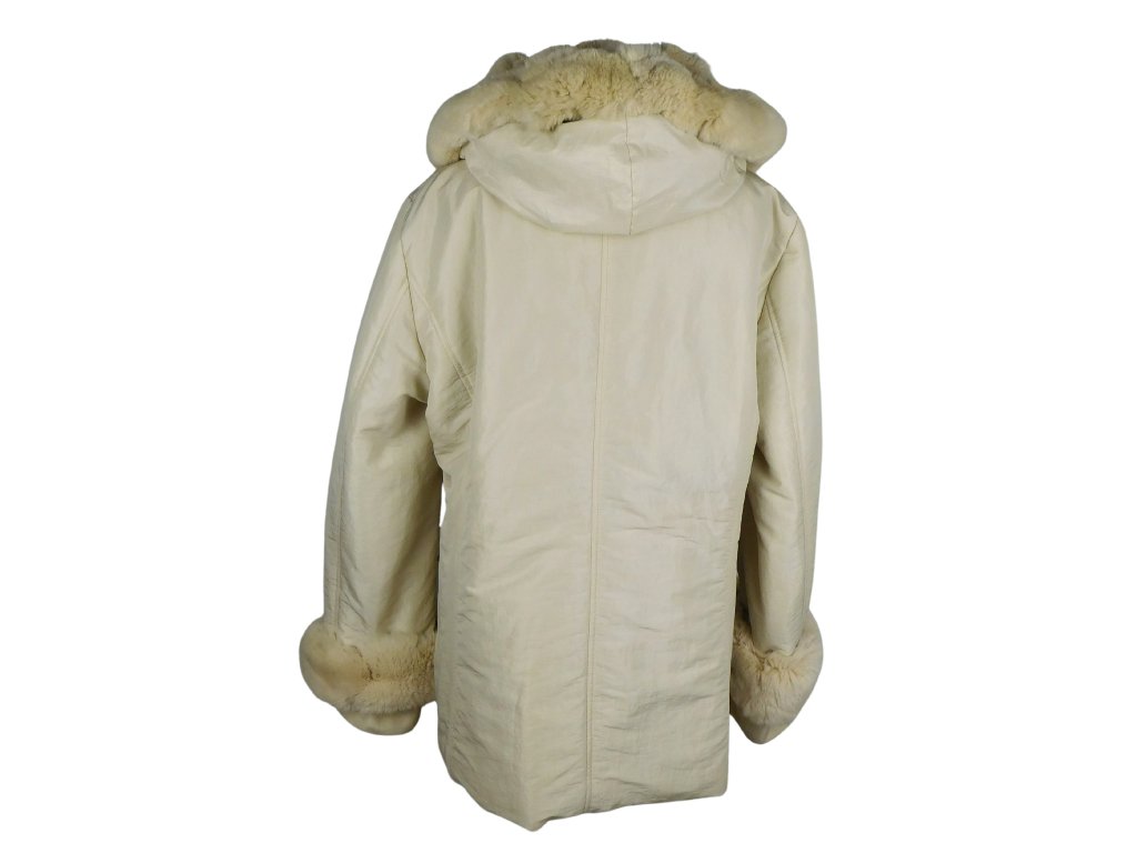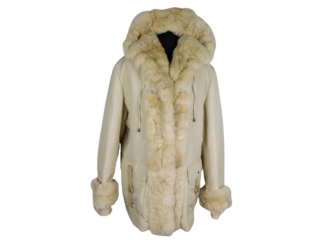 Dámský béžový kabát s kapucí a pravou kožešinou KARA 44*