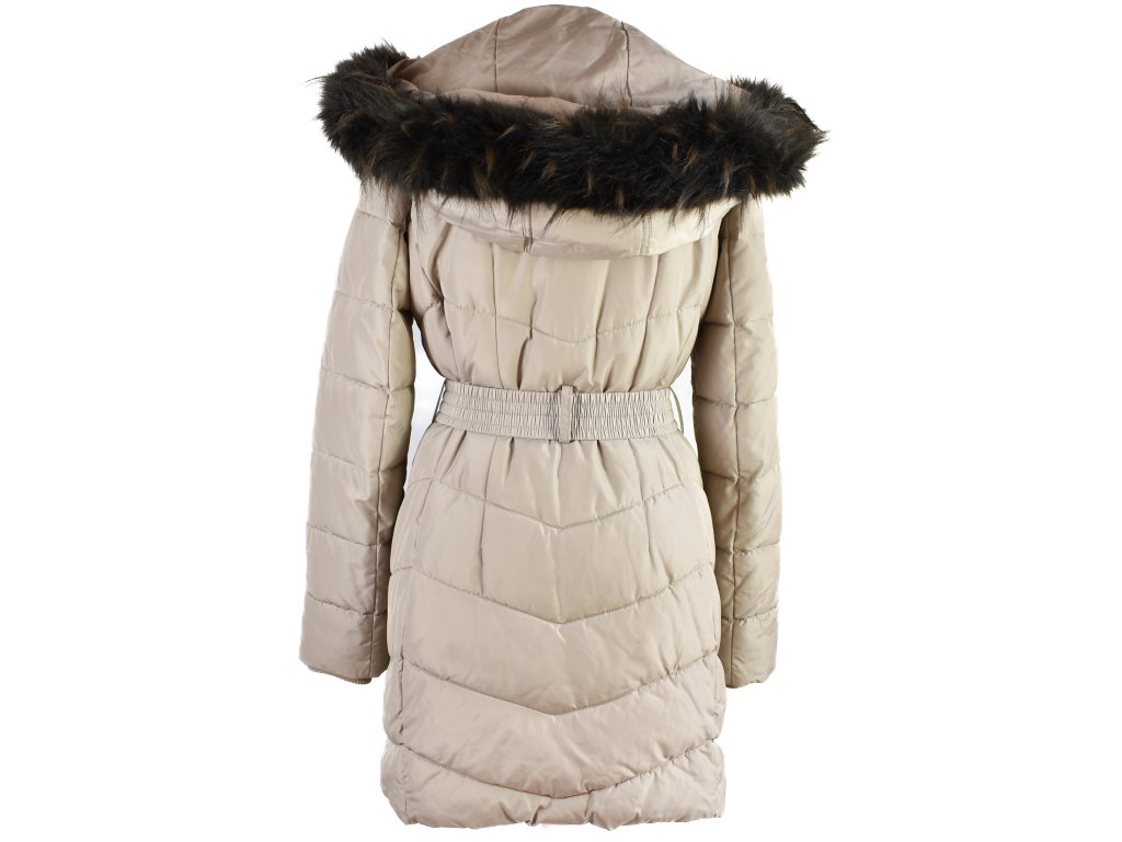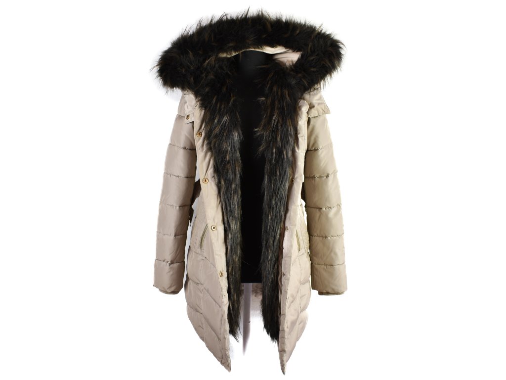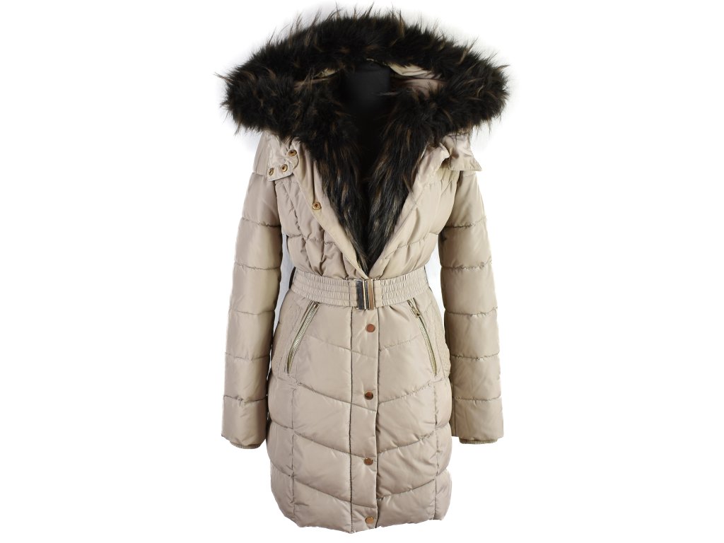 Dámský béžový prošívaný kabát s kožešinou AMISU M