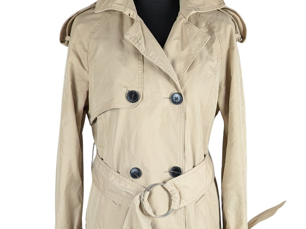 Dámský béžový trenčkot s páskem Stradivarius S