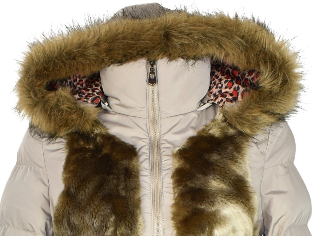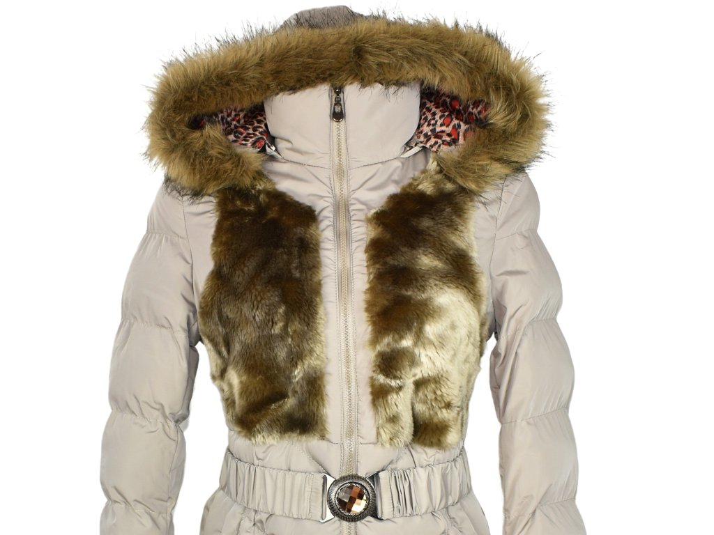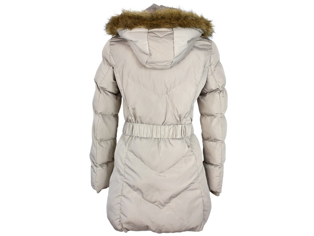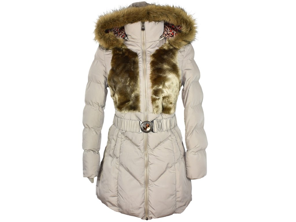 Dámský béžový zimní kabát s páskem a kožíškem Gallop M