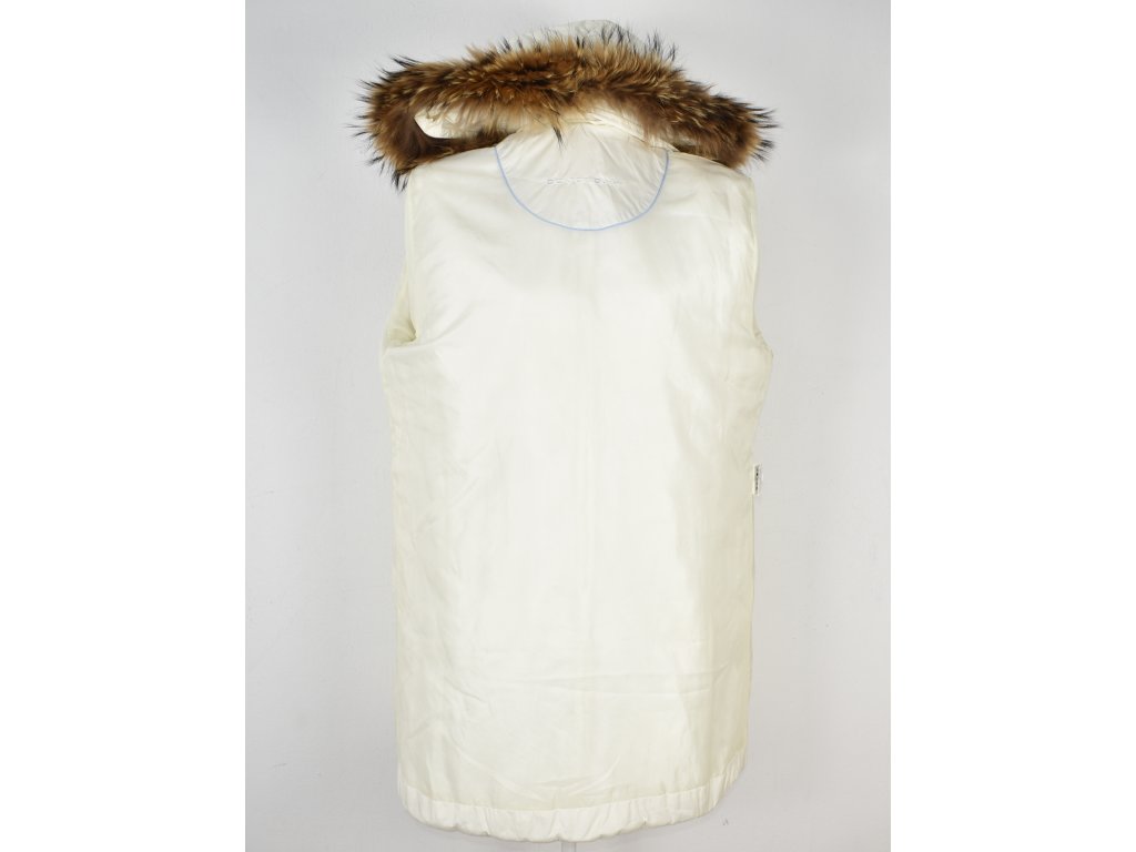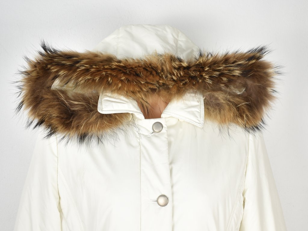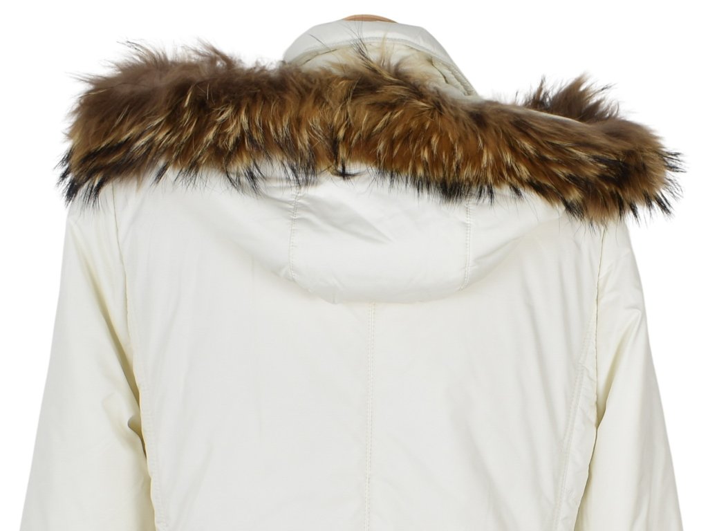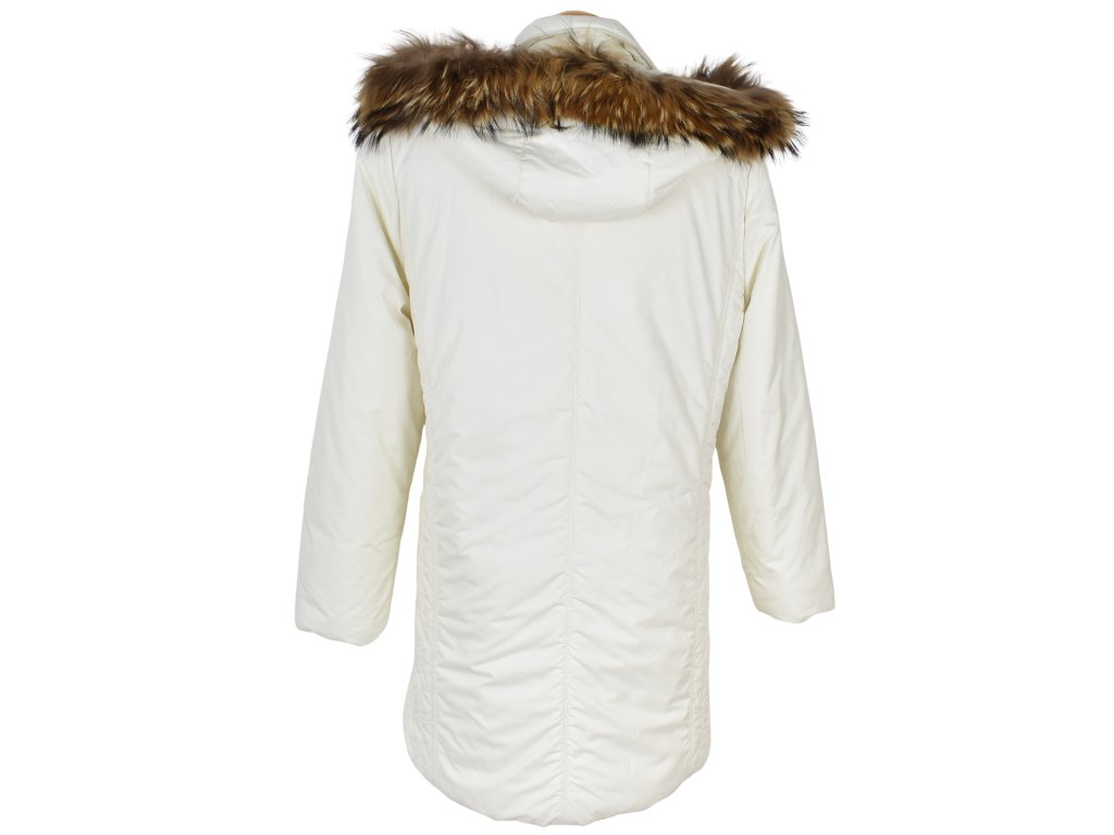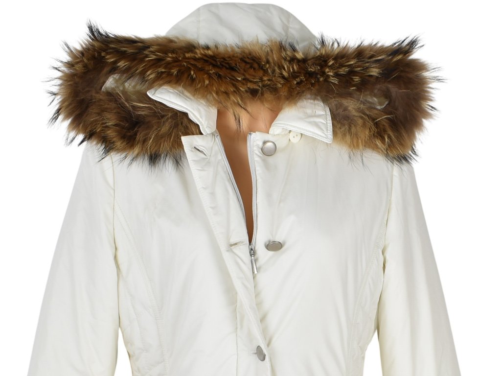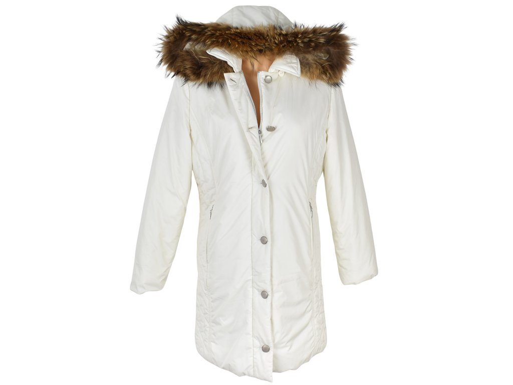 Dámský bílý kabát s kapucí s pravou kožešinou Center Coat L