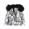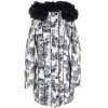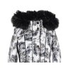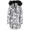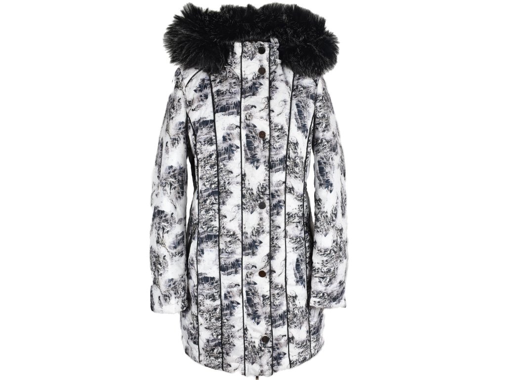 Dámský černobílý prošívaný kabát, odnimatelná kapuce s odnimatelnou kožešinou, 100% polyester