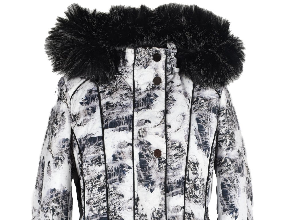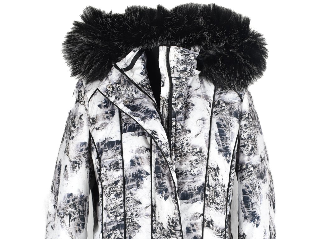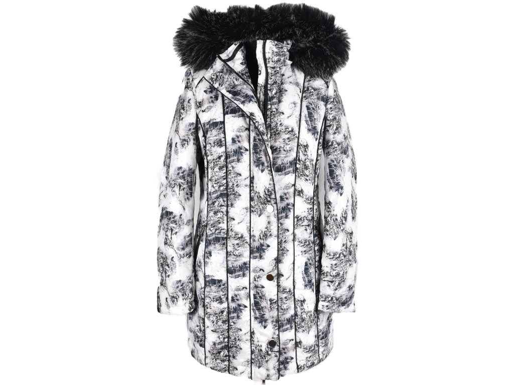 Dámský černobílý prošívaný kabát, odnimatelná kapuce s odnimatelnou kožešinou, 100% polyester