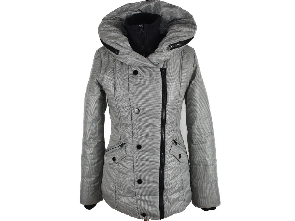 Dámský černobílý prošívaný kabát s límcem XS/34