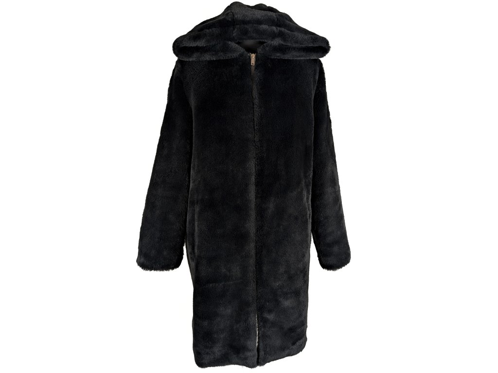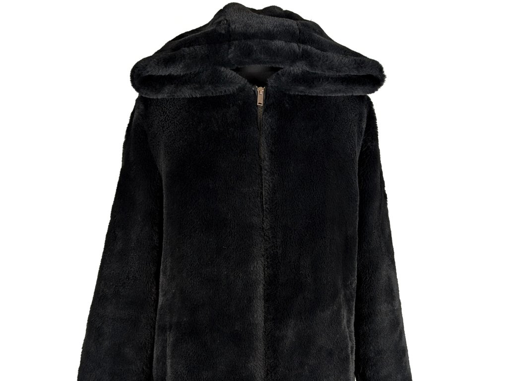 Dámský černý plyšový kožíšek s kapucí ZARA S