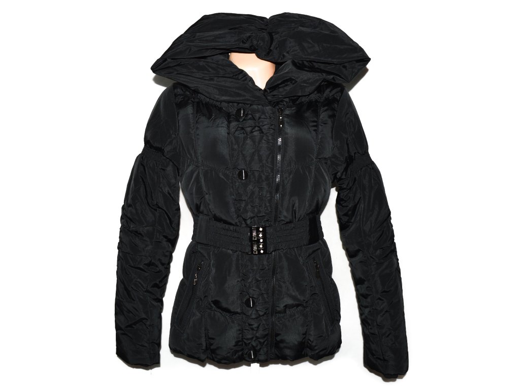 Dámský černý prošívaný kabát - křivák s pásekm a límcem Forest S