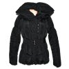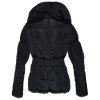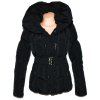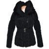 FOREST, dámský černý prošívaný kabát s páskem a límcem, zateplený - uvnitř kožíšek