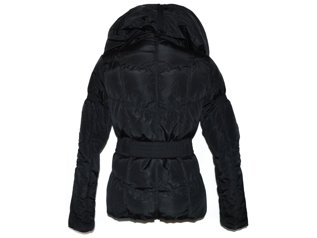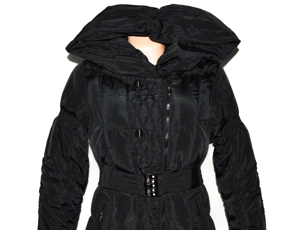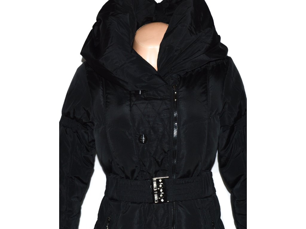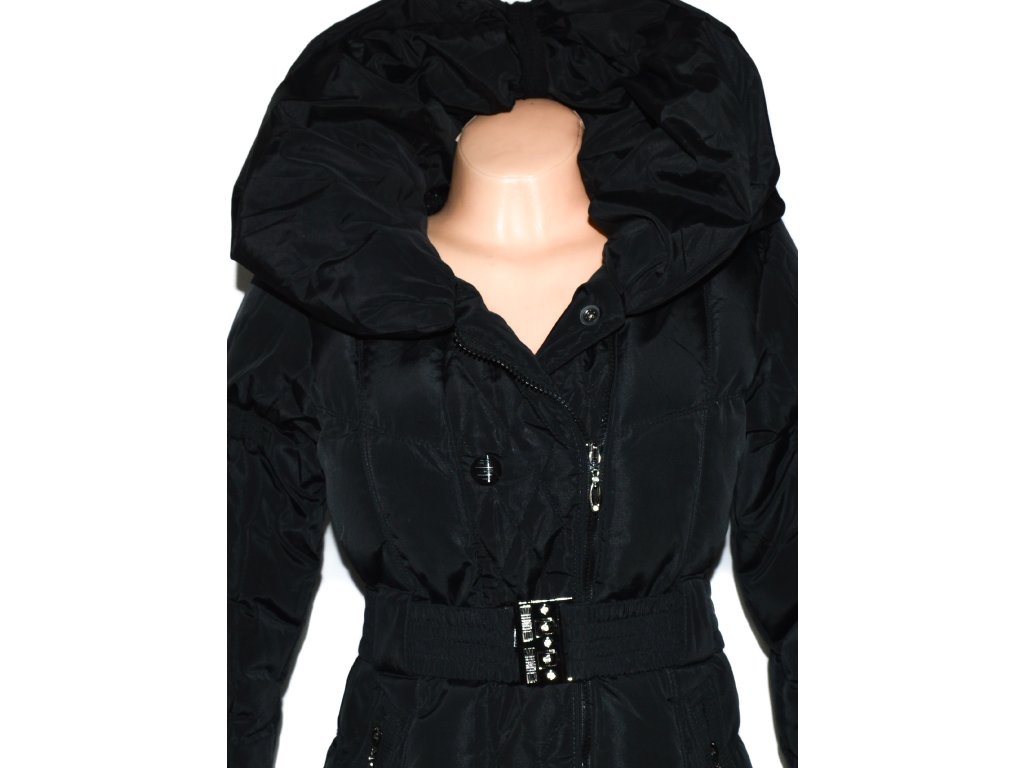Dámský černý prošívaný kabát - křivák s pásekm a límcem Forest S