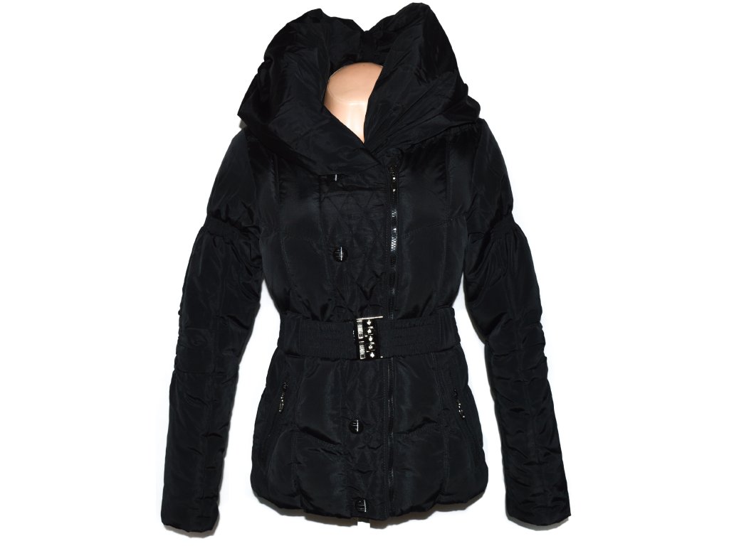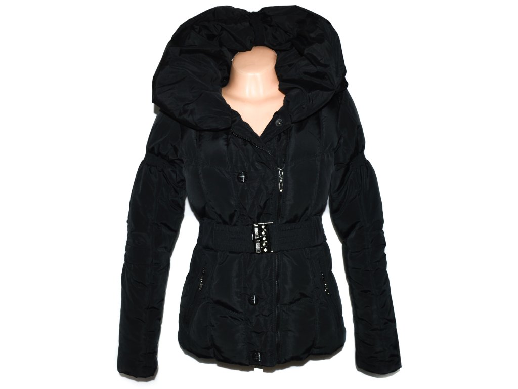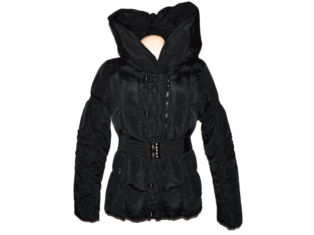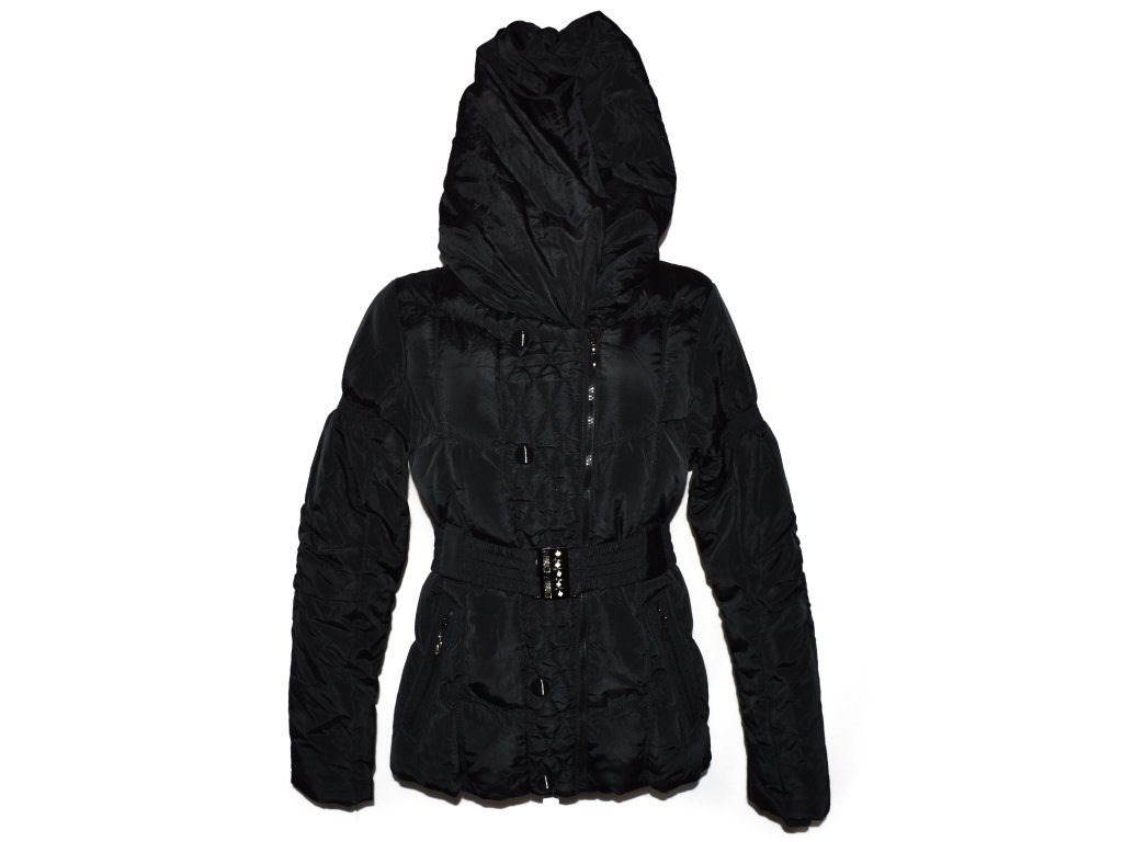 Dámský černý prošívaný kabát - křivák s pásekm a límcem Forest S