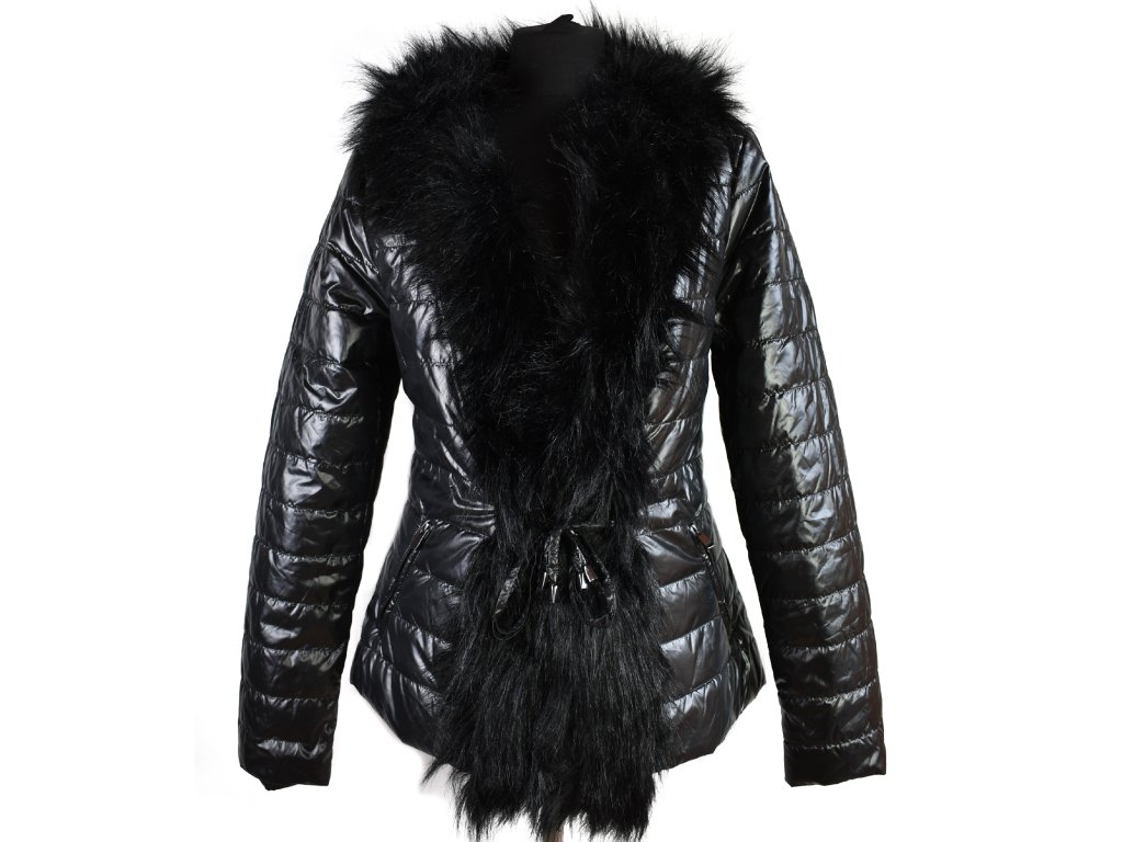 Dámský černý prošívaný kabát s kožíškem AMISU 36, 40