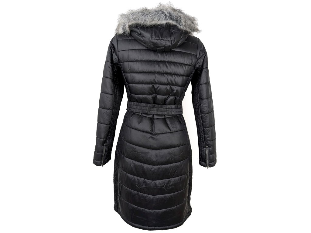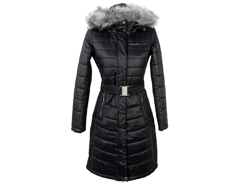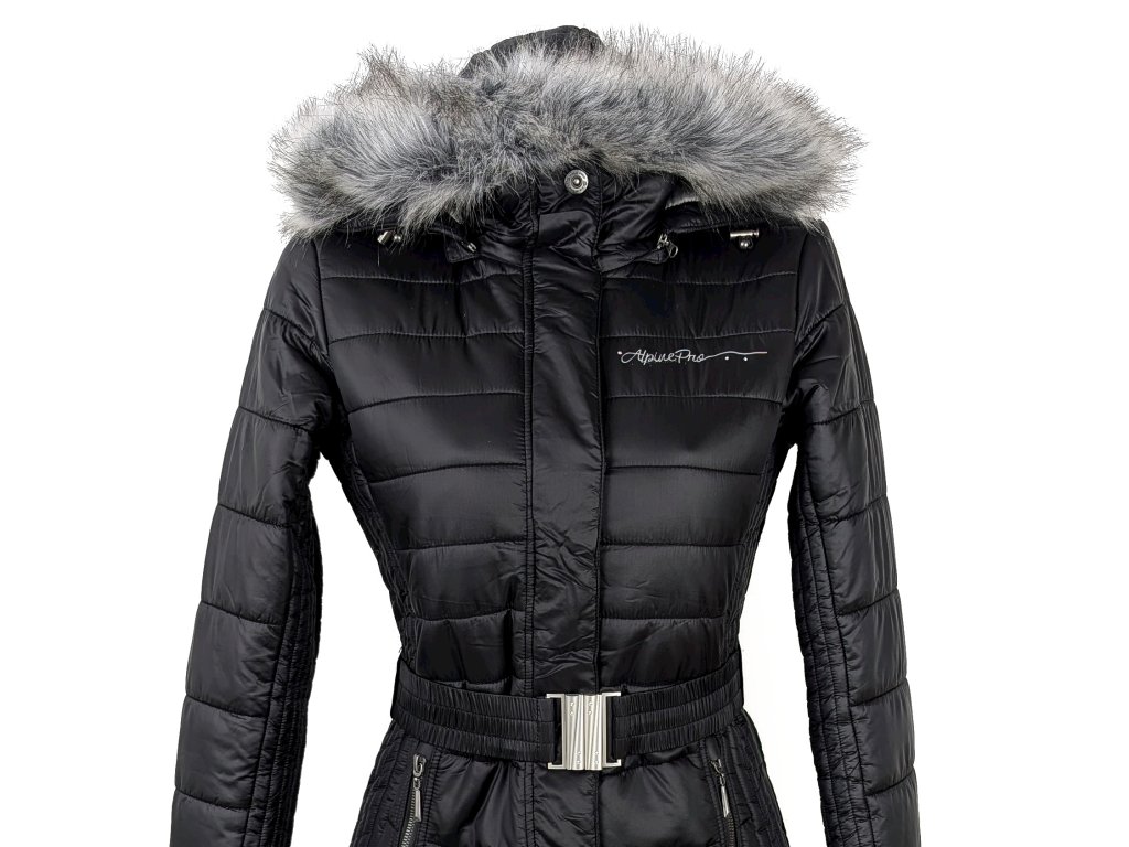 Dámský černý prošívaný kabát s páskem a kapucí Alpine Pro M