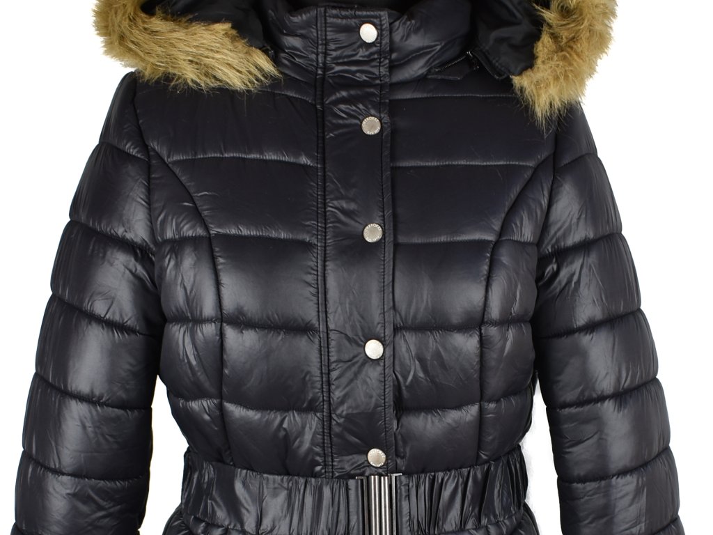Dámský černý prošívaný kabát s páskem a kapucí Cherokee 12/M