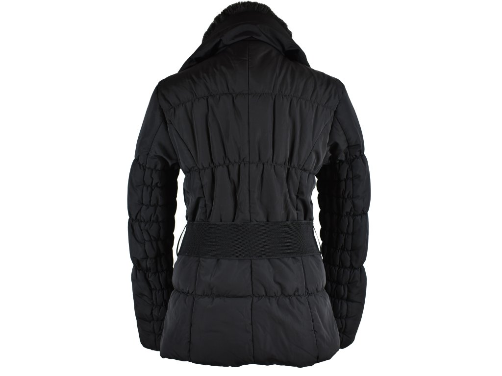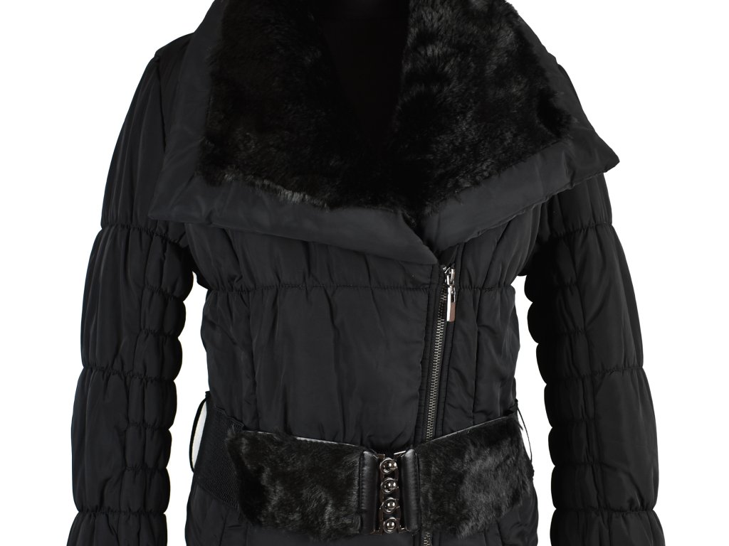 Dámský černý prošívaný kabát s páskem a kožešinou Gallop L
