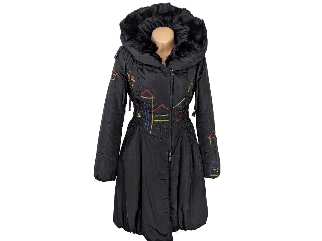 Dámský černý prošívaný kabát s pravou kožešinou Moda Marlene S