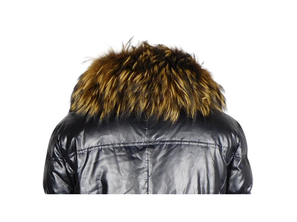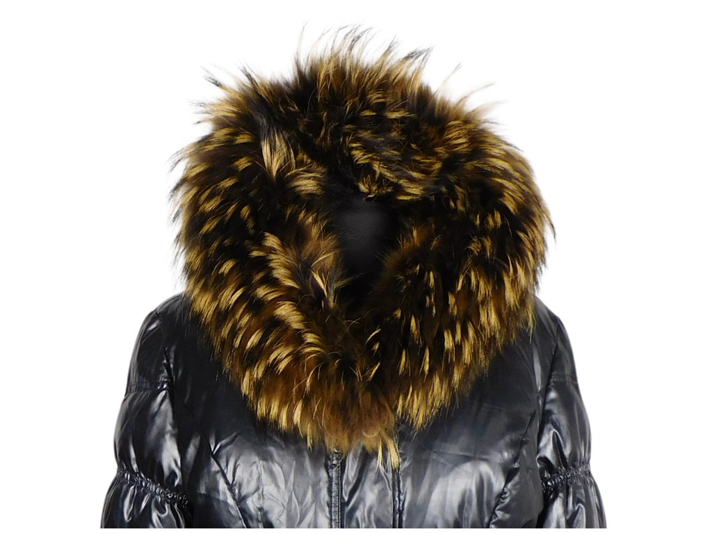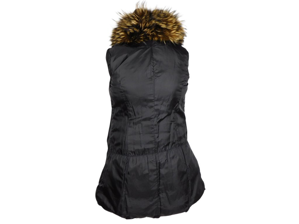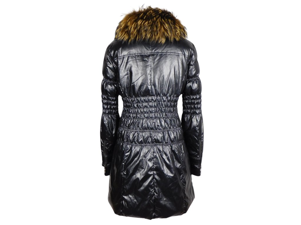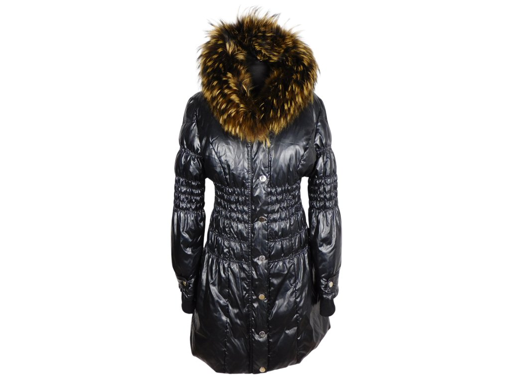 Dámský černý prošívaný kabát s pravou kožešinou S*
