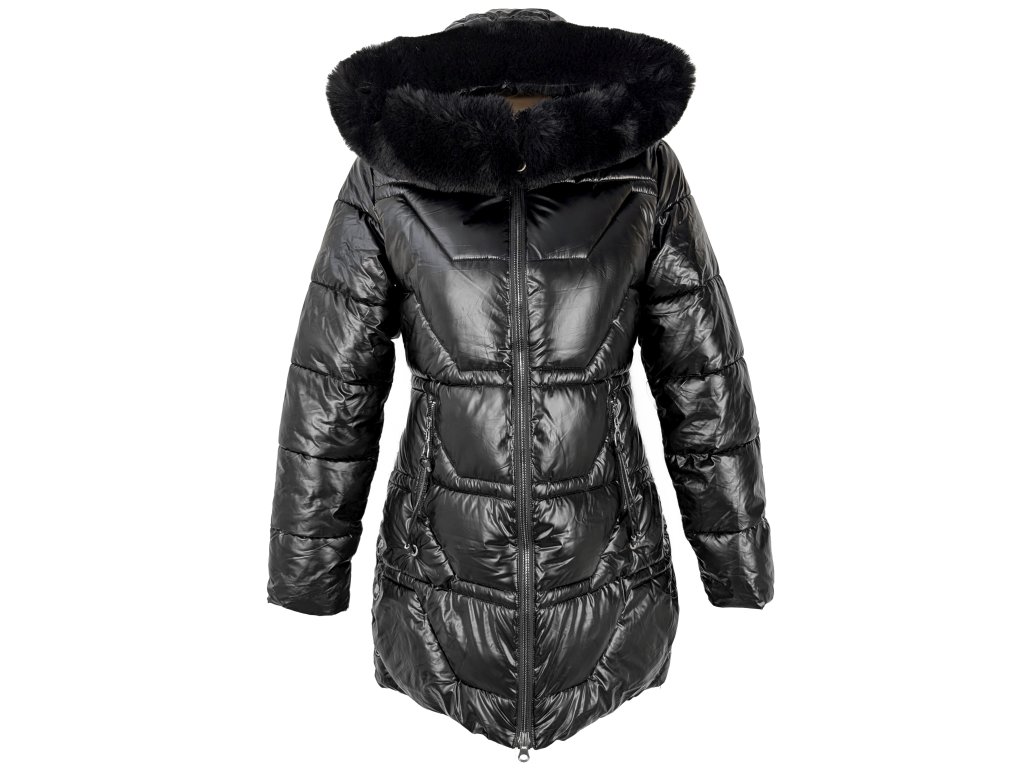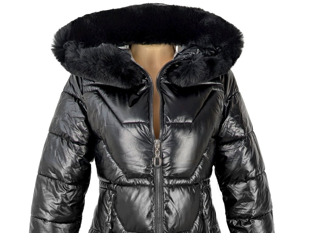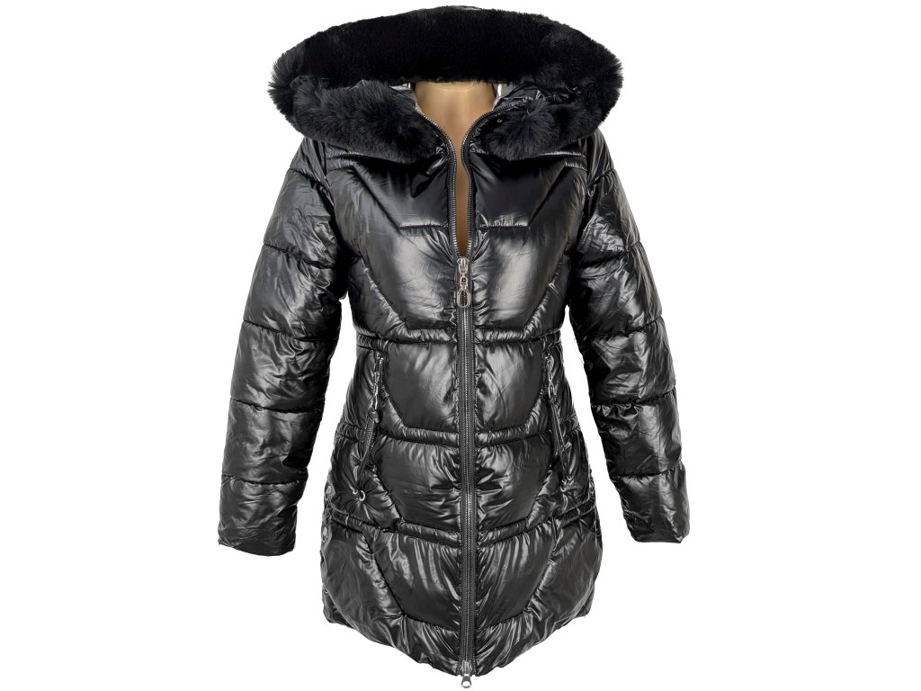 Dámský černý prošívaný zimní kabát s kapucí S'West M