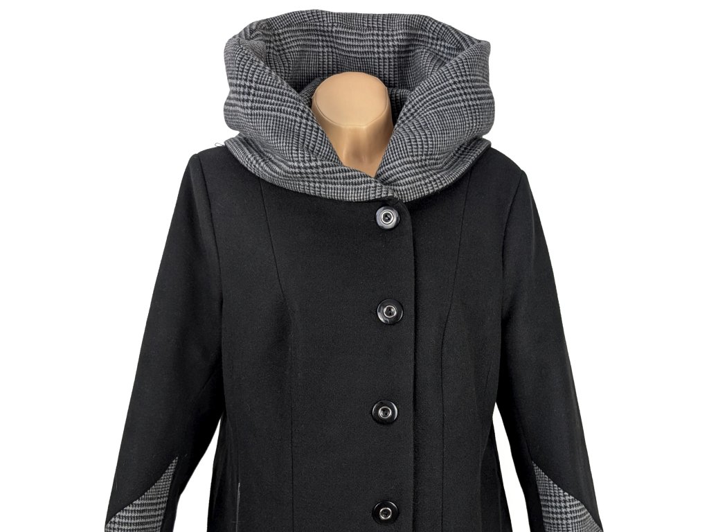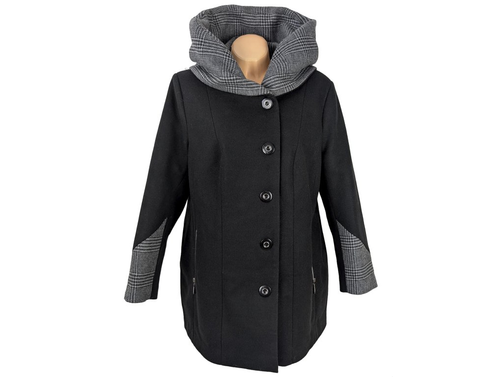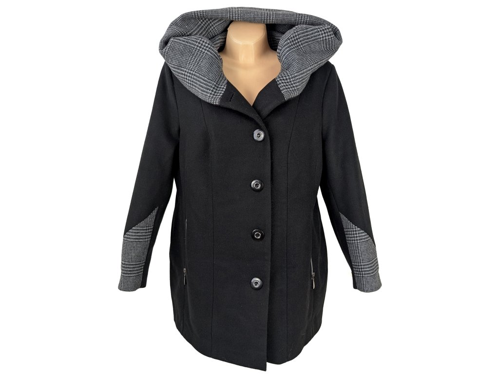 Dámský černý zimní kabát s límcem/ kapucí EWA 50