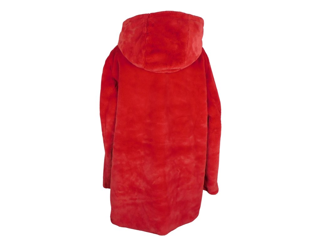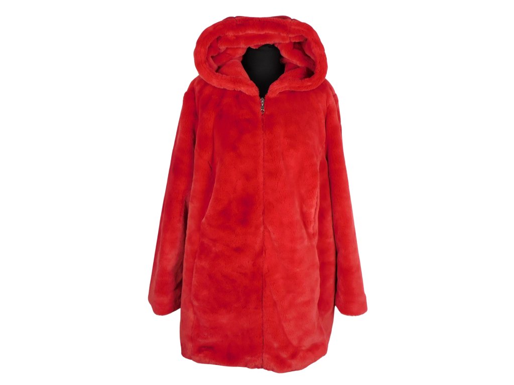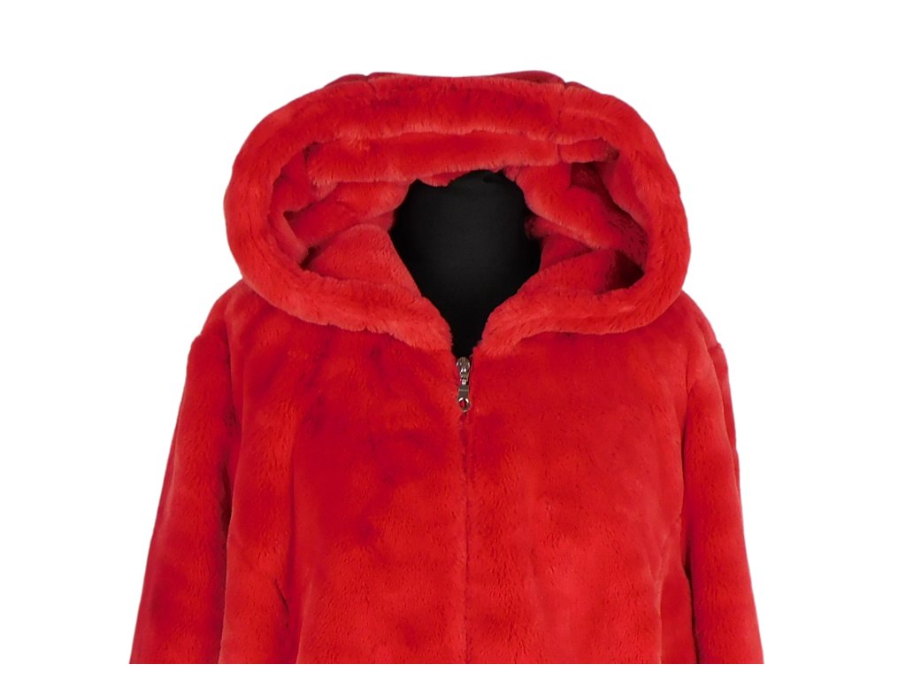 Dámský červený kožíšek (plyšáček) s kapucí a na zip 48/UK22*