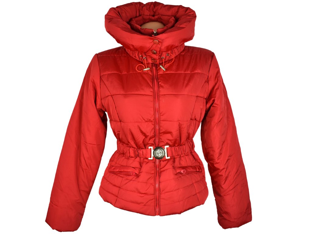 Fascinate, dámský červený prošívaný kabát s páskem, velikost M, 100% polyester