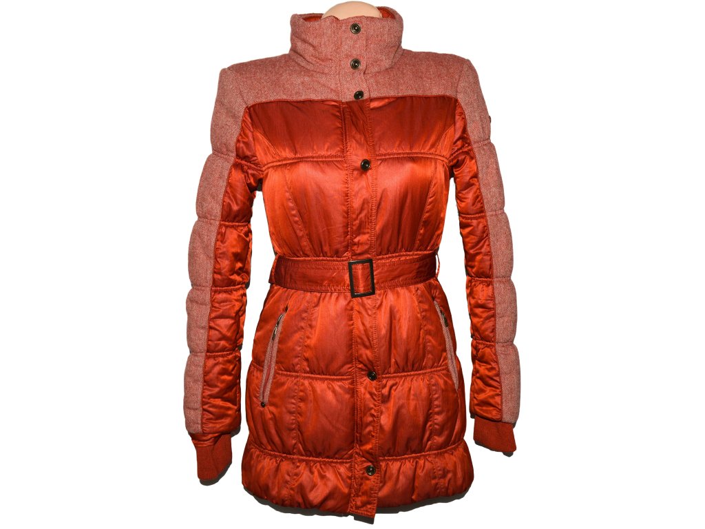 TIMEOUT, Dámský kabát, oranžový kabát, s páskem, prošívaný šusťákový kabát, zateplený, na zip a cvoky